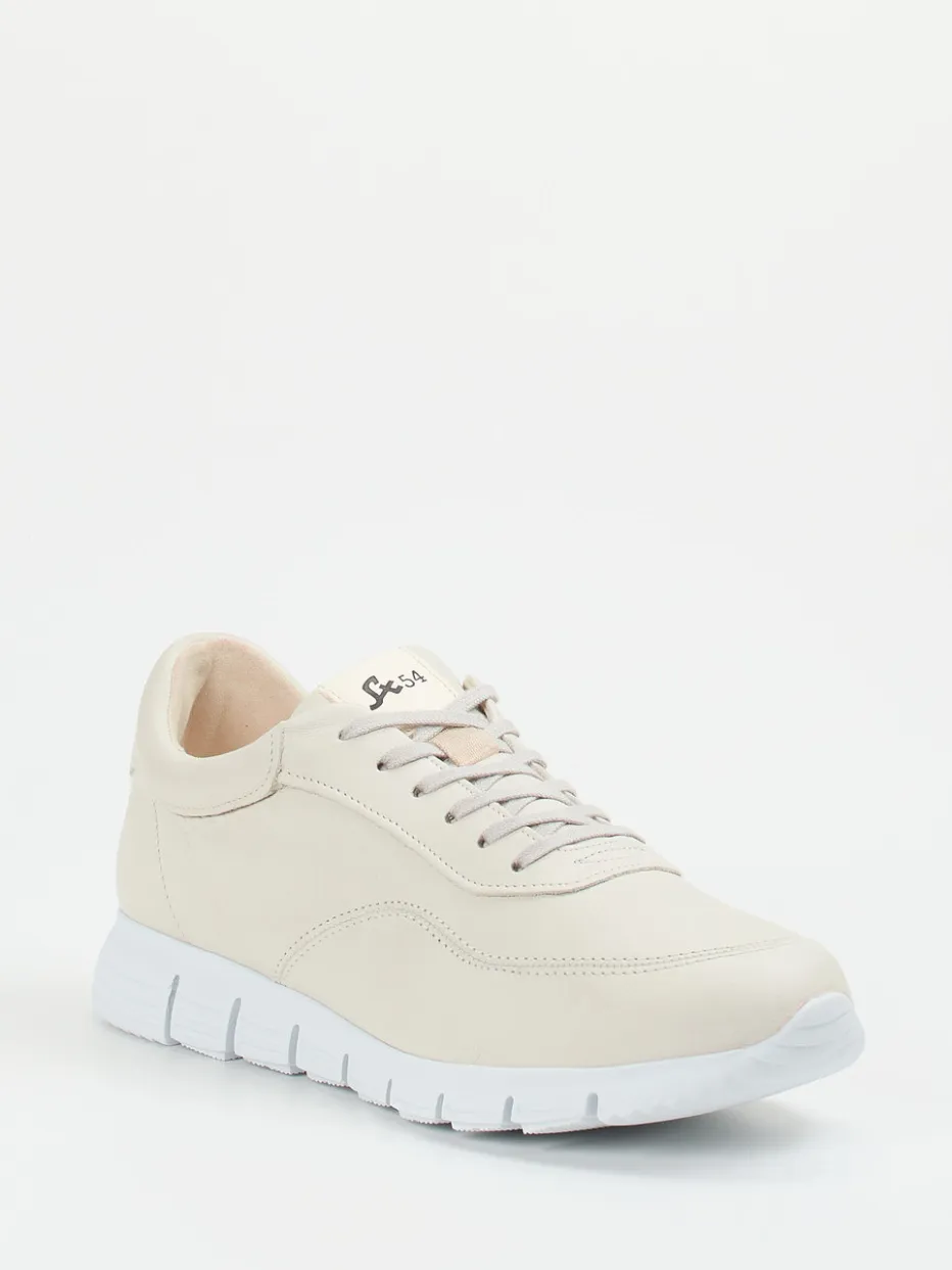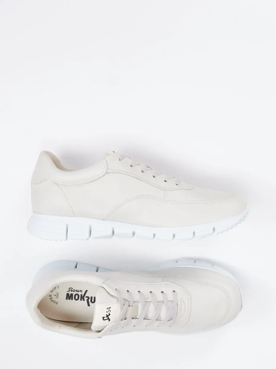Moderner Komfort trifft dezentes Design.Die Marke Sioux präsentiert mit diesem Sneaker einen stilistisch zurückhaltenden Low-Top für Alltag und Freizeit. Die weiche Gummisohle mit feiner Struktur sorgt für ein leichtes Laufgefühl, während das hochwertige Kalbleder in cremigem Weiß durch seine glatte, matte Oberfläche punktet. Abgerundete Linien, eine tonige Schnürung und dezente Farbakzente im Fersenbereich unterstreichen den modernen Minimalismus. Die weich gepolsterte Innensohle ist herausnehmbar und bietet hohen Komfort für langes Tragen. Inspiriert von „Quiet Luxury“ passt der Sneaker ideal zu Soft-Neutrals im Frühjahr. Besonders stilvoll zu leichter Stoffhose und beigem Rucksack. Flexibel, ästhetisch und hochwertig – echte Sioux-Qualität für jeden Tag.