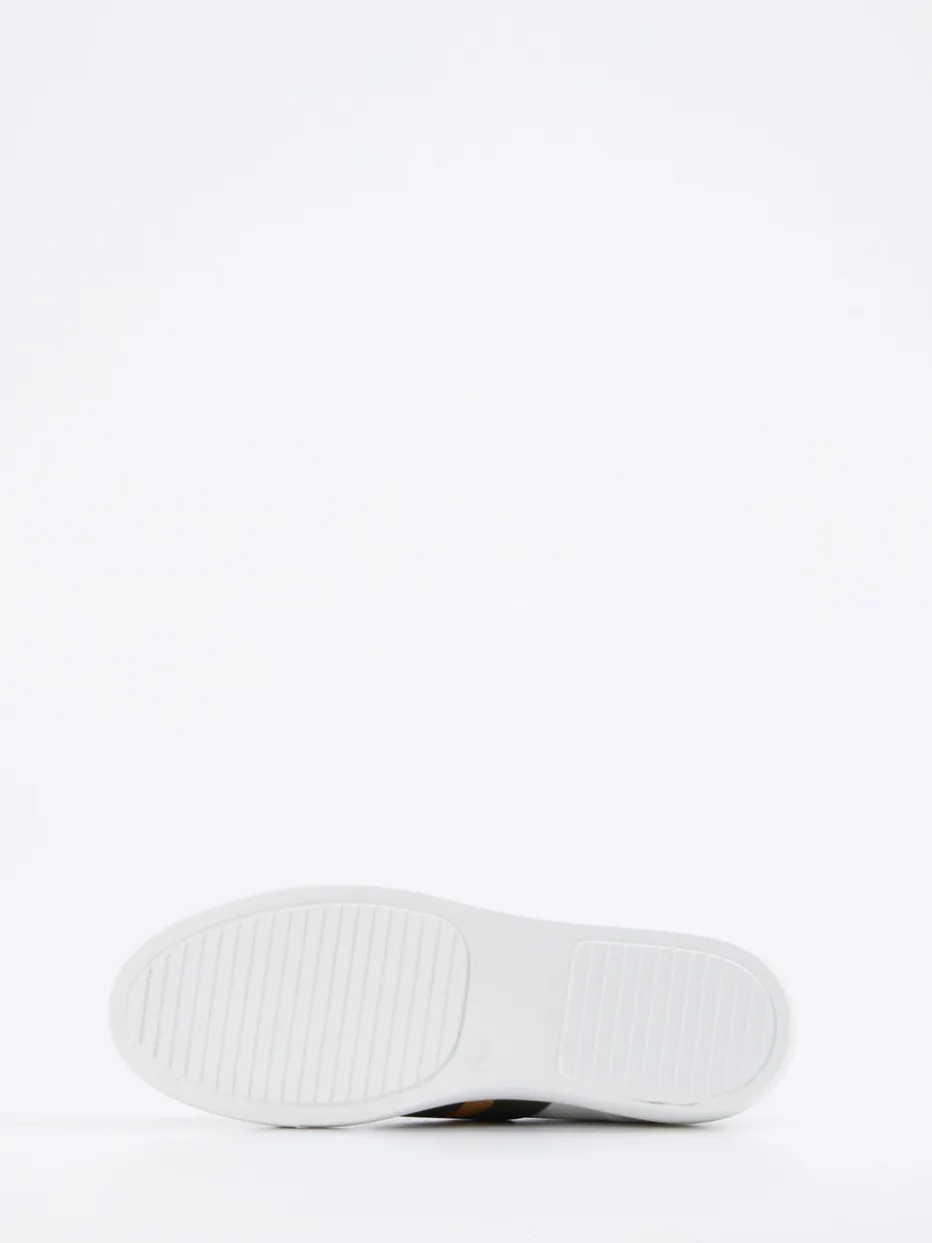 Ein stilvoller Statement-Sneaker für modebewusste Minimalistinnen – gefertigt aus edlem Kalbleder und verfeinert durch dezente Metallic-Akzente.