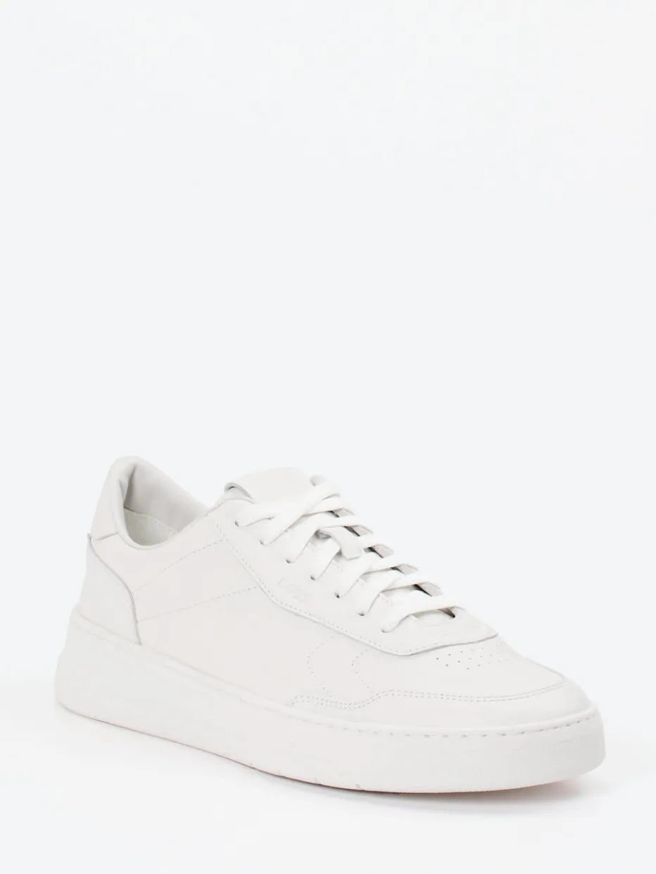 Dieser Herren-Sneaker verbindet feines Kalbleder mit klarer Linienführung und dezentem Branding. Ideal für minimalistische Looks im Alltag und Büro.