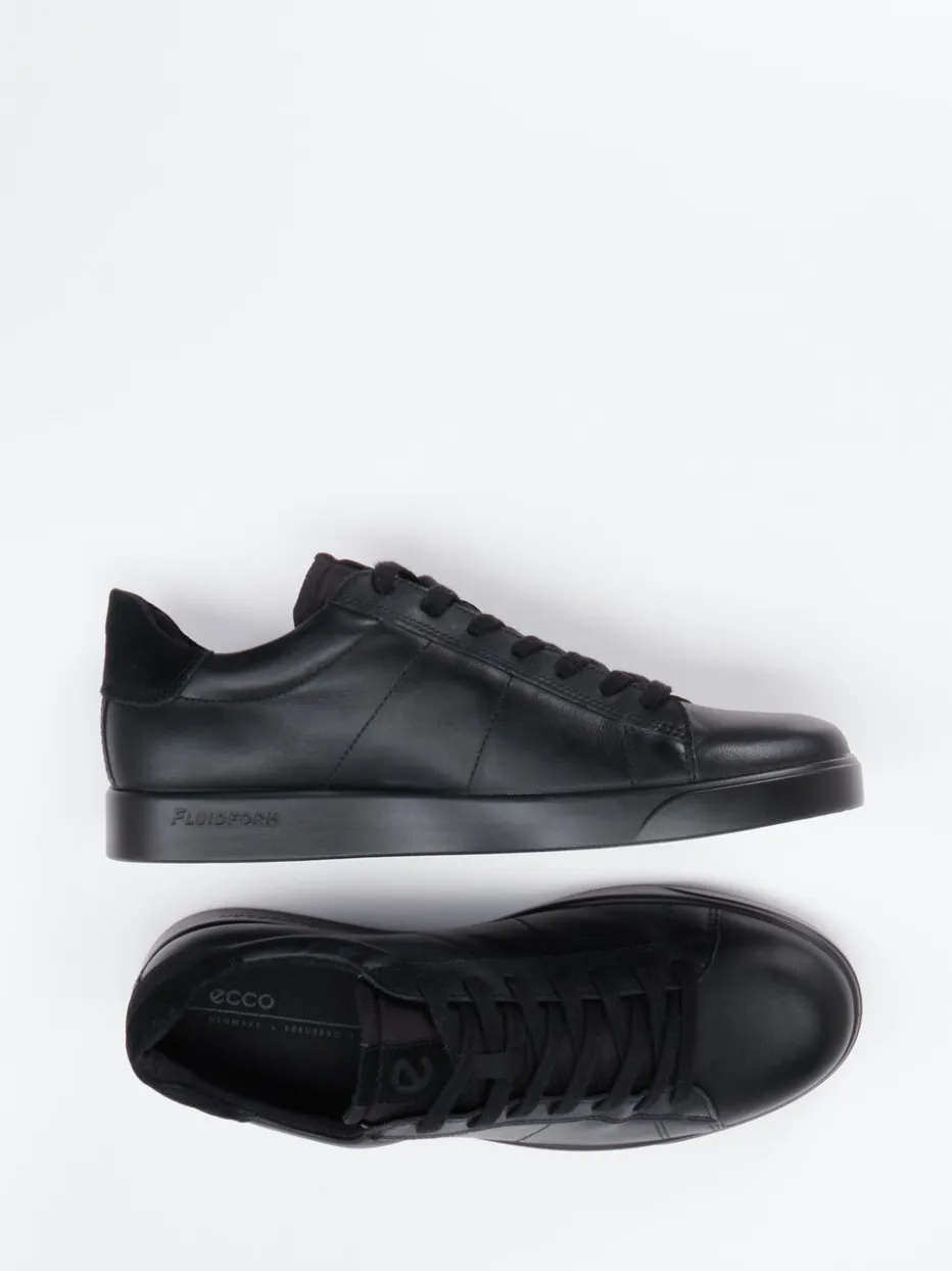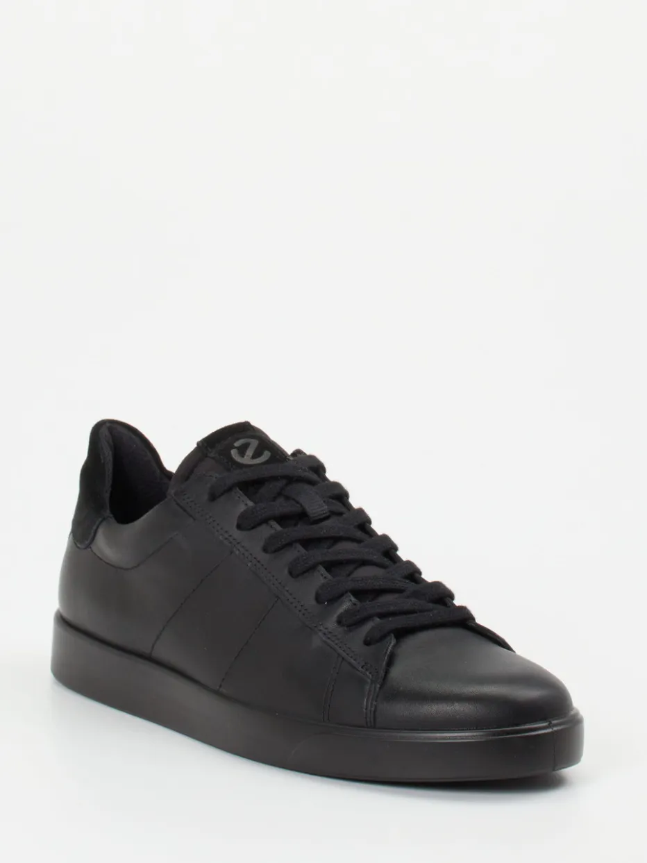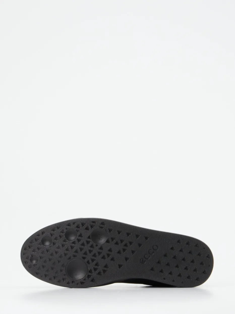 Ob auf dem Weg ins Büro oder beim Stadtbummel – das Modell aus weichem Kalbleder mit samtig angeschliffenen Veloursdetails garantiert Stil und Komfort. Mattes Schwarz, eine klassische Low-Top-Silhouette und dezente Ton-in-Ton-Nähte unterstreichen den cleanen Look. Innen sorgt atmungsaktives Mesh-Futter für Tragekomfort, eine leichte Gummisohle bietet sicheren Halt. Die tonale Schnürung, ECCO-Logos und ein gepolsterter Fersenkragen runden das Design ab – perfekt für All-Black-Outfits und zeitloses Styling.