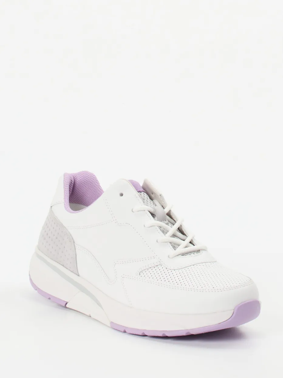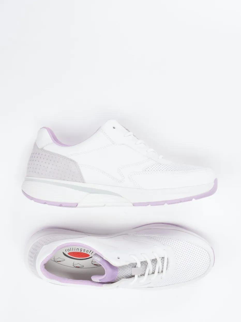 Sportliche Leichtigkeit trifft Komfort.Der Damen-Sneaker von Gabor Comfort verbindet sportives Design mit durchdachtem Tragegefühl. Für Alltag und Freizeit konzipiert, bietet das Modell dank weichem Kalbleder mit glatter, matter Oberfläche und atmungsaktiven Mesh-Zonen ein angenehmes Klima am Fuß. Fliederfarbene Details sowie perforiertes Vorderblatt und gepolsterter Schaftrand setzen visuelle Akzente. Die sportlich-gerundete Form, Schnürverschluss und eine ergonomisch dämpfende Gummisohle sorgen für Laufkomfort bei jedem Schritt. Minimalistische Formgebung und Pastell-Töne machen ihn zum trendigen Alltagsbegleiter. Höchster Gehkomfort mit auswechselbarem Fußbett – typisch Gabor Comfort.