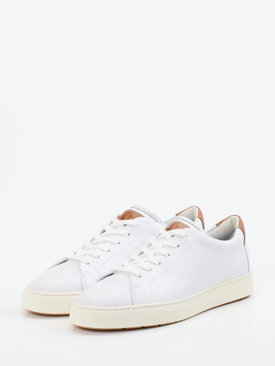 Minimalistische Eleganz für jeden Tag.Die Marke Lloyd präsentiert einen Herren-Sneaker, der durch Schlichtheit und Qualität besticht. Ideal für Wochen im Büro wie für entspannte Freizeit-Looks: Gefertigt aus weichem, glattem Kalbleder in Weiß, ergänzt durch cognacfarbene Lederpatches auf Ferse und Lasche. Die klare, flache Silhouette, ein gepolsterter Fersenbereich und das angenehm leichte Tragegefühl machen diesen Low-Top-Sneaker besonders vielseitig. Ein dezentes Logo, feine Nähte und der Schnürverschluss unterstreichen den minimalistischen Charakter im Stil moderner Streetwear. Lässt sich mühelos mit hellen Jeans oder Chinos kombinieren. Lloyd vereint handwerkliche Verarbeitung mit urbanem Stilgefühl.