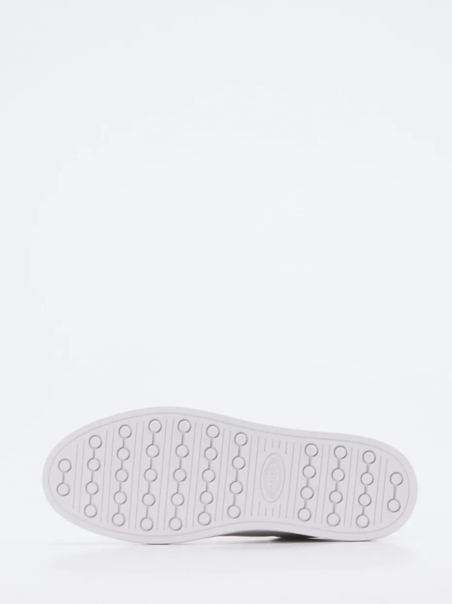 Schlichte Raffinesse am Fuß.Tod’s präsentiert mit diesem Sneaker ein stilvolles Modell für den Alltag. Ideal für urbane Looks zwischen Business und Freizeit punktet der Low-Top mit hochwertigem, glänzendem Kalbleder in reinem Weiß. Dezente Ton-in-Ton-Nähte, ein goldfarbener Logoprint auf der Zunge sowie die markentypischen Gummi-Noppen an der Ferse setzen elegante Akzente. Innen sorgt weiches Kalblederfutter für hohen Komfort, das Fußbett ist angenehm gepolstert. Minimalistische Form und Schnürverschluss runden das cleane Design ab – perfekt für den „Quiet Luxury“-Trend. Ein Premium-Sneaker, der dezente Statements mit kompromissloser Qualität verbindet.