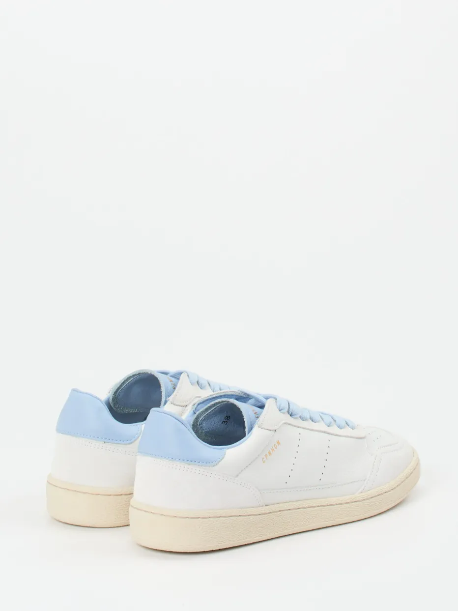 Ideal für entspannte City-Tage oder den Weg ins Lieblingscafé: Hochwertiges Kalbleder mit samtigen Veloursdetails verleiht dem Low-Top eine edle Haptik, während sich Off-White als Basisfarbe dezent in jeden Look fügt. Pastellblaue Highlights und Gold-Branding setzen stilvolle Akzente. Die Cupsohle aus flexiblem Gummi und ein gepolsterter Schaftrand sorgen für Tragekomfort im Alltag. Inspiriert vom Retro-Court-Stil, ist dieser Sneaker ein Favorit für minimalistische Capsule Wardrobes. Perfekt kombiniert zu Cropped Jeans oder Oversize-Sweatshirts.