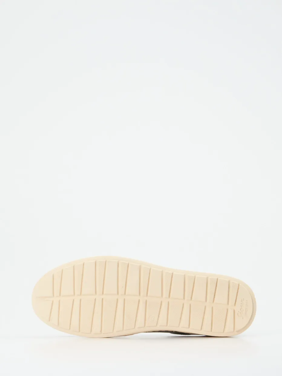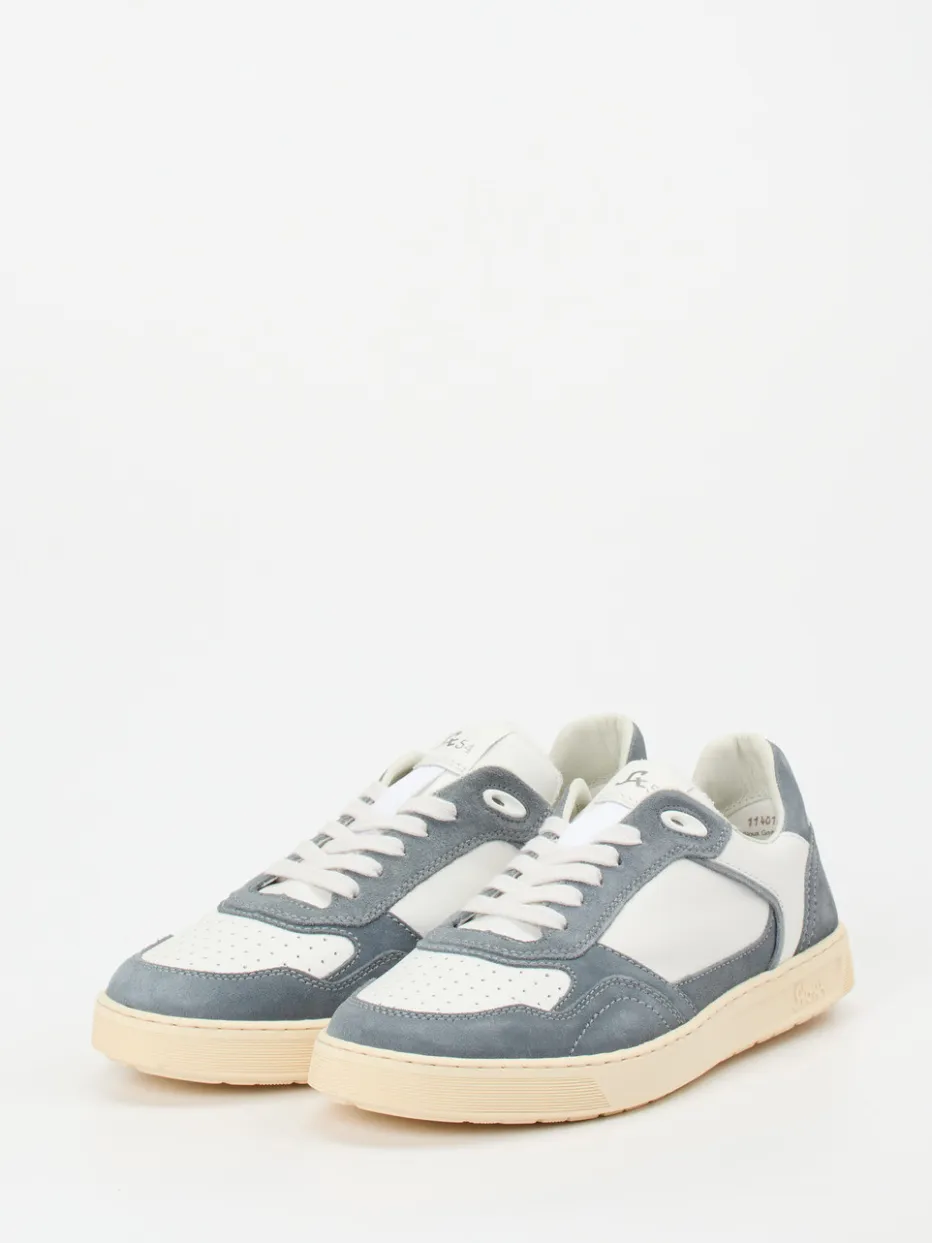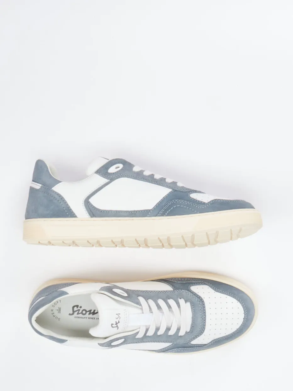 Retro-Neuinterpretation in gedeckten Tönen.Sioux interpretiert klassische Sneaker neu – mit einem unisex-tauglichen Low-Top-Modell in edlen Lederqualitäten. Für entspanntes Understatement im Alltag bietet dieser Sneaker aus weißem Kalbleder und blaugrauem Veloursleder eine harmonische Materialkombination mit samtig-glatter Haptik. Perforationen an der Zehenkappe und eine kontrastarme Schnürung unterstreichen den von Retro-Sportswear beeinflussten Look. Die rutschhemmende, cremefarbene Gummisohle rundet das funktionale Design ab. Innen überzeugt ein Frottee-Futter und ein herausnehmbares Supersoft-Fußbett. Ein stilvoller Komfortschuh, der dezente Retro-Ästhetik mit Everyday-Tauglichkeit im Sinne der Quiet-Luxury-Bewegung verbindet.