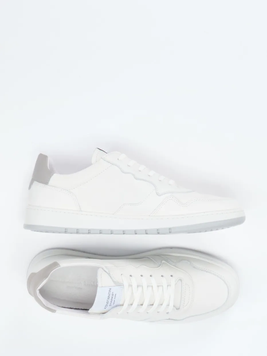 Minimalismus trifft Retro-Court-Stil.Der Sneaker von Konstantin Starke überzeugt mit klassischem Low-Top-Cut und puristischem Offwhite-Look. Ideal für den fließenden Übergang vom Büro in den Feierabend: Glattes Kalbleder mit feiner Struktur bildet die hochwertige Basis dieses Designs, das durch dezente Steppnähte, eine strukturierte Gummisohle und einen hellgrauen Fersenakzent gekonnt akzentuiert wird. Die weich gepolsterte Innenverarbeitung mit Frottee-Futter sorgt für höchsten Tragekomfort – kombinierbar zu Jeans, Chino oder Anzughose. Der Sneaker passt in urbane Streetwear und den „Quiet Luxury“-Trend gleichermaßen. Ein stilvoller Klassiker mit handwerklicher Raffinesse.
