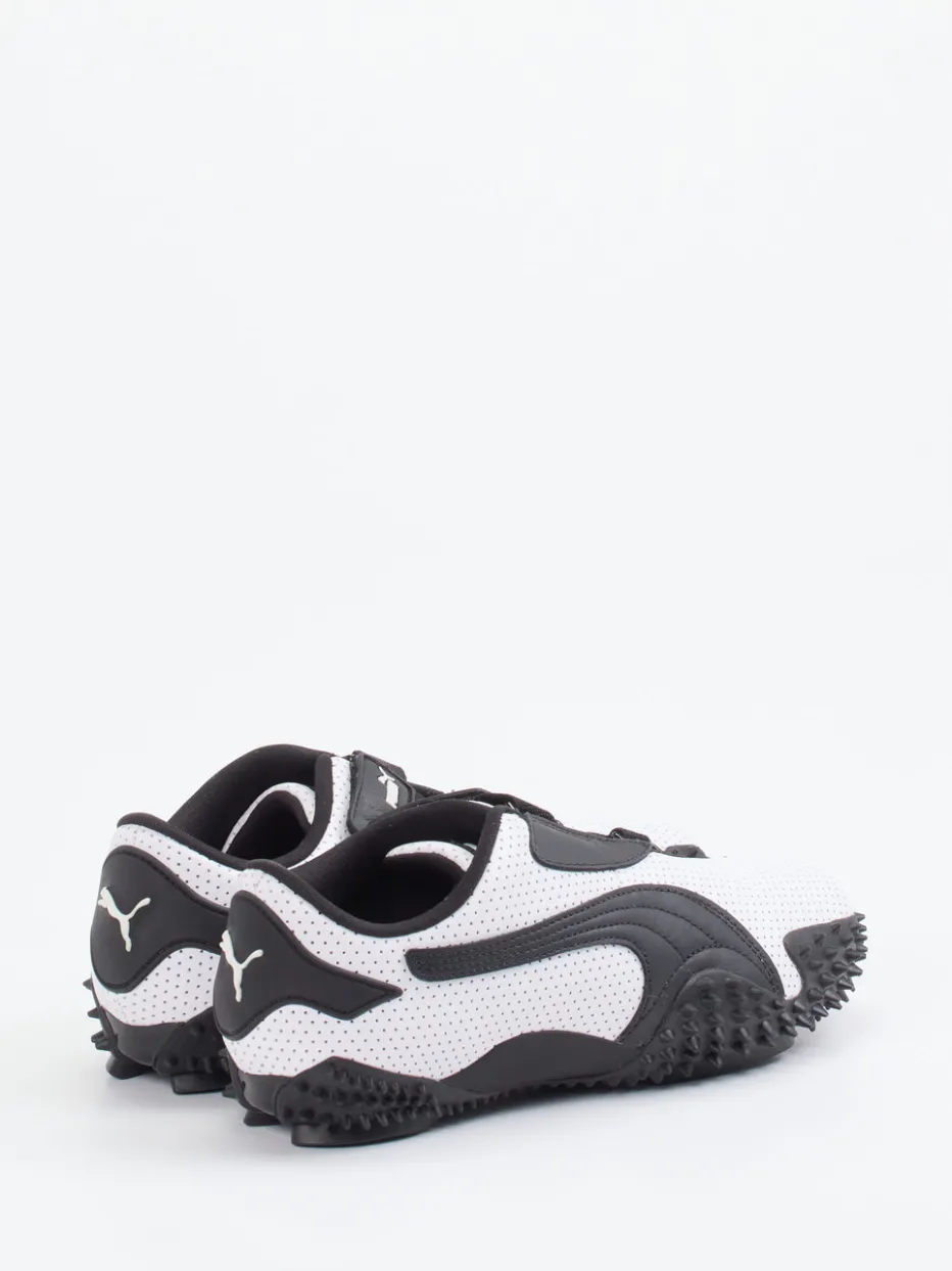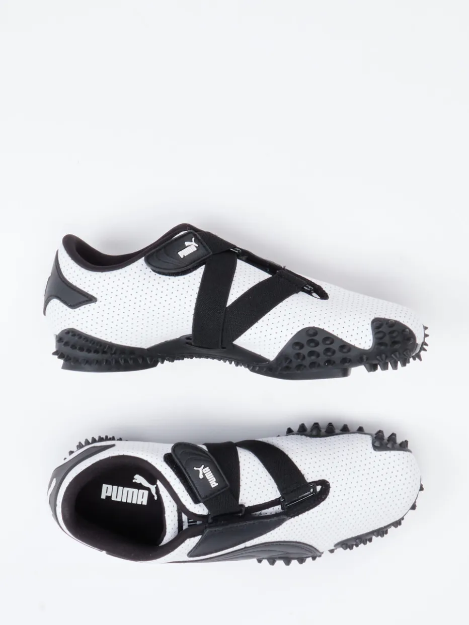 Unkonventionelles Design mit Retro-Futurismus.Puma präsentiert diesen weißen Low-Top-Sneaker mit auffälliger Silhouette. Ideal für stilbewusste Freizeit- und Streetwear-Looks: Der Sneaker aus perforiertem Kalbleder kombiniert eine matt strukturierte Oberfläche mit schwarzem Logo-Print und einem charakteristischen Klettverschluss. Die aggressive Außensohle mit Y2K-Anklängen setzt ein gestalterisches Ausrufezeichen und greift Retro- und Techwear-Elemente auf. Das Ortholite-Fußbett sorgt für optimale Belüftung und angenehme Dämpfung. Besonders gut kombinierbar mit sportlichen Tights oder Tech-Accessoires. Ein visuelles Statement mit maximaler Funktionalität – typisch Puma.