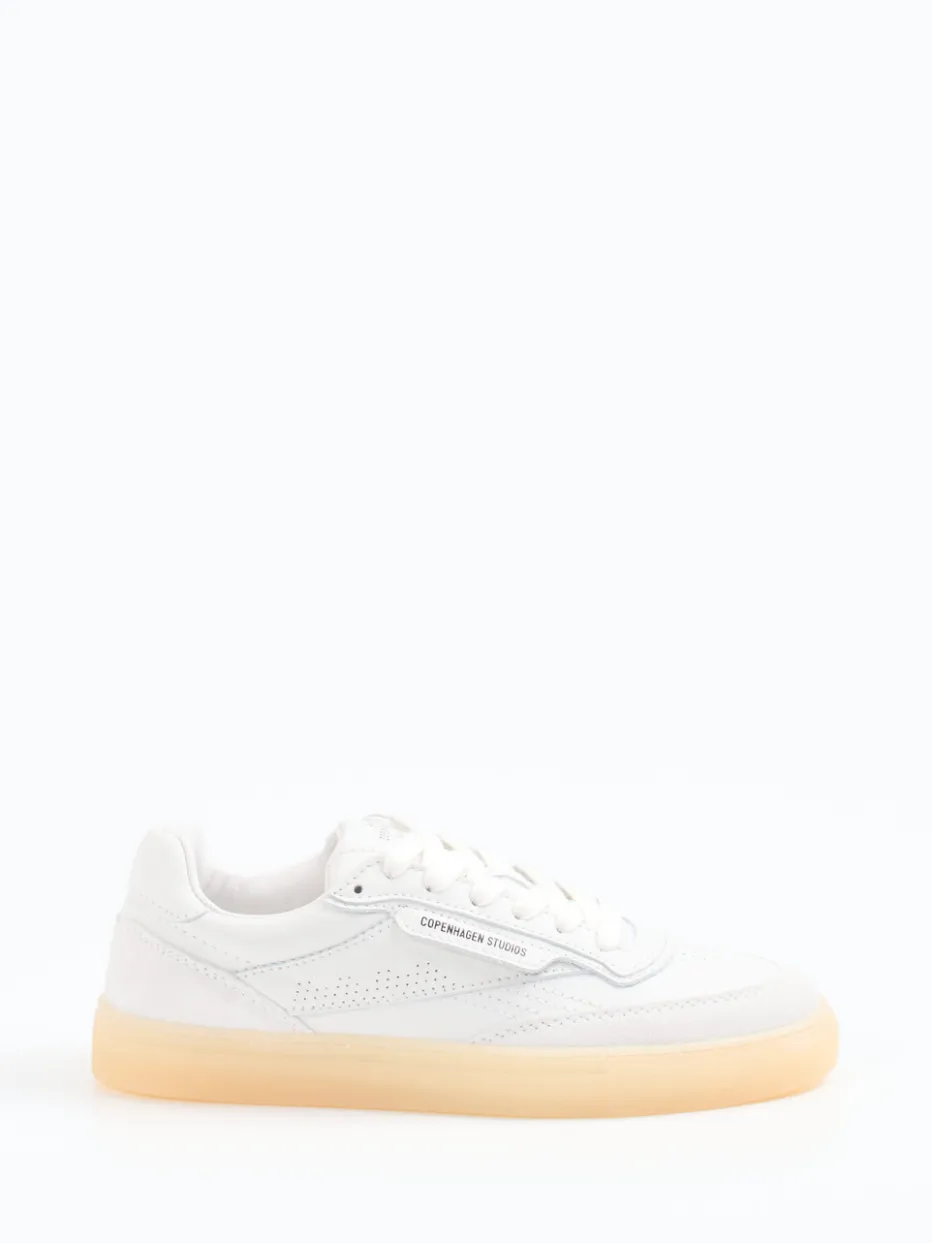 Skandinavischer Minimalismus für den Alltag.Copenhagen interpretiert mit diesem Sneaker die klassische Low-Top-Silhouette neu. Ob beim Stadtbummel oder im entspannten Office-Alltag – dieser Sneaker vereint puristisches Design mit urbaner Funktionalität. Das glatte weiße Kalbleder trifft auf hellbeige Veloursdetails mit samtigem Finish. Dezente Perforationen, Ton-in-Ton-Nähte und eine seitliche Logo-Prägung unterstreichen den cleanen Look. Die rundumvernähte, leicht transparente Gummisohle in Vanille bietet Trittsicherheit und Komfort. Innen sorgt atmungsaktives Frottee für ein angenehmes Fußklima. Ein zurückhaltendes Statement-Piece für moderne, stilbewusste Outfits.