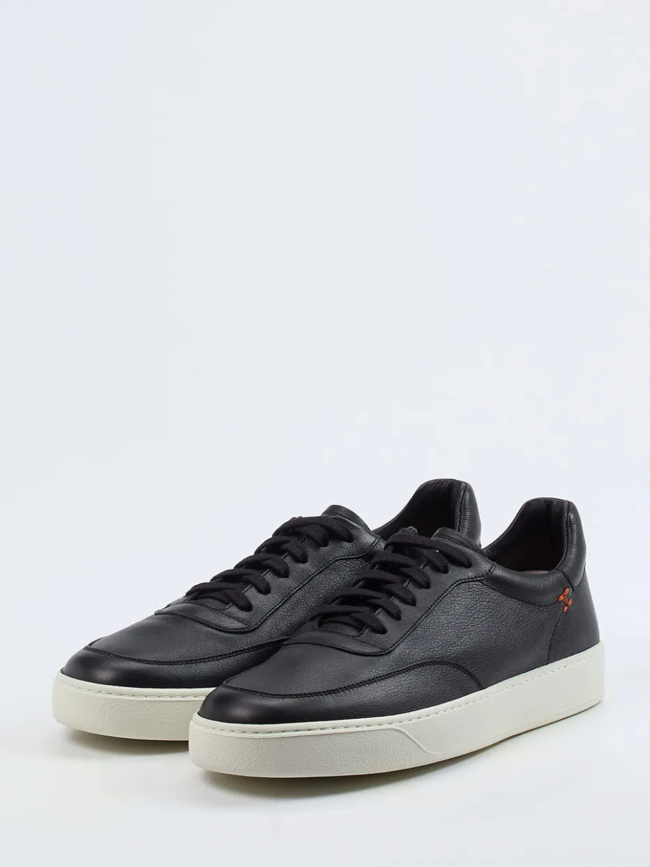 Ob beim Weg ins Büro oder im urbanen Alltag – der Sneaker überzeugt mit geschmeidigem Kalbleder in dezent genarbter Struktur, kombiniert mit einer kontrastierenden Offwhite-Gummisohle. Die klare Silhouette, orangefarbene Logo-Stickerei und Ton-in-Ton-Nähte verleihen ihm einen modernen Look, der sich von Streetwear bis Business-Casual vielseitig einsetzen lässt. Textilfutter und herausnehmbares Fußbett sorgen dabei für spürbaren Komfort. Ein Schuh im Zeichen von „Quiet Luxury“ und cleanem Design.