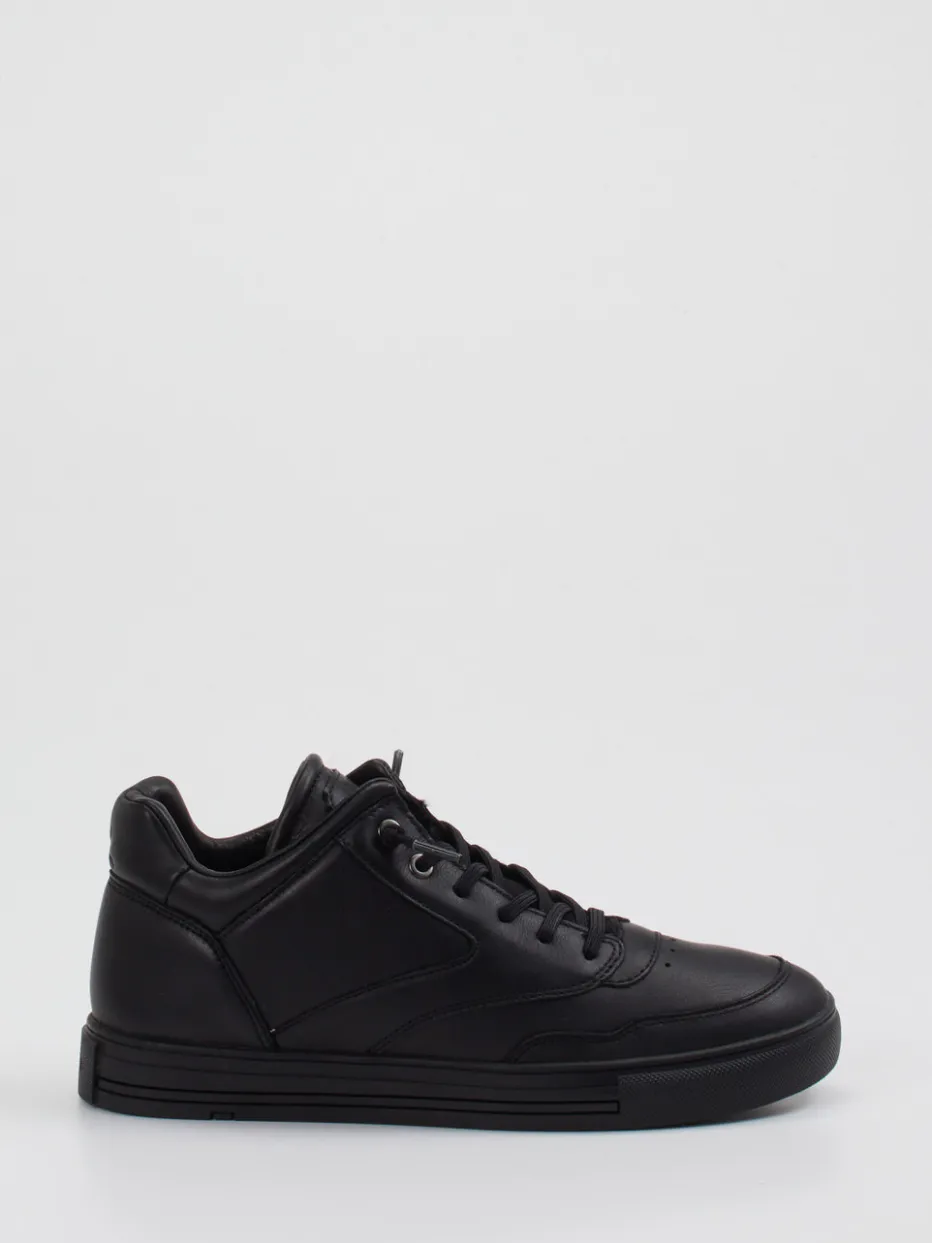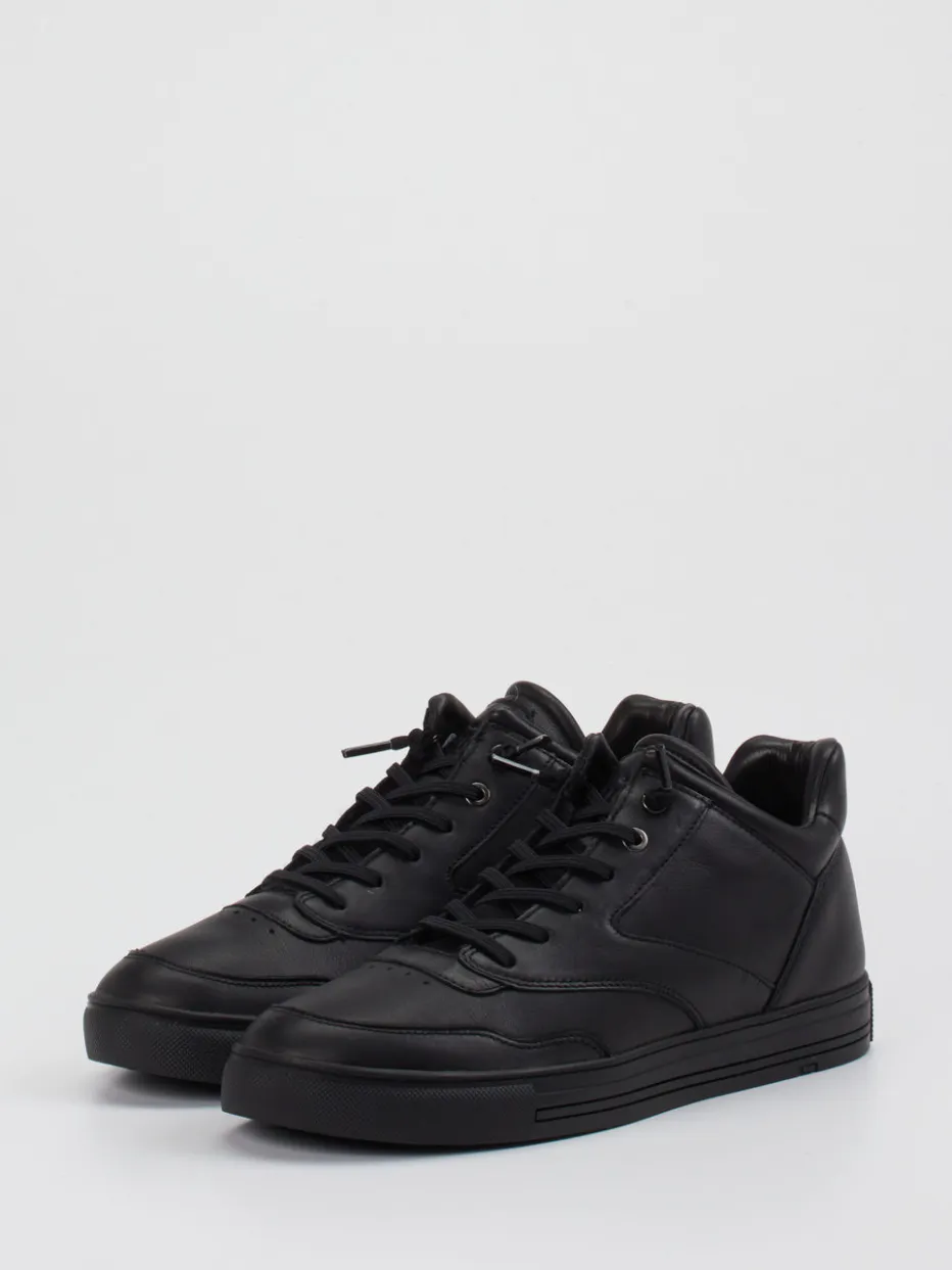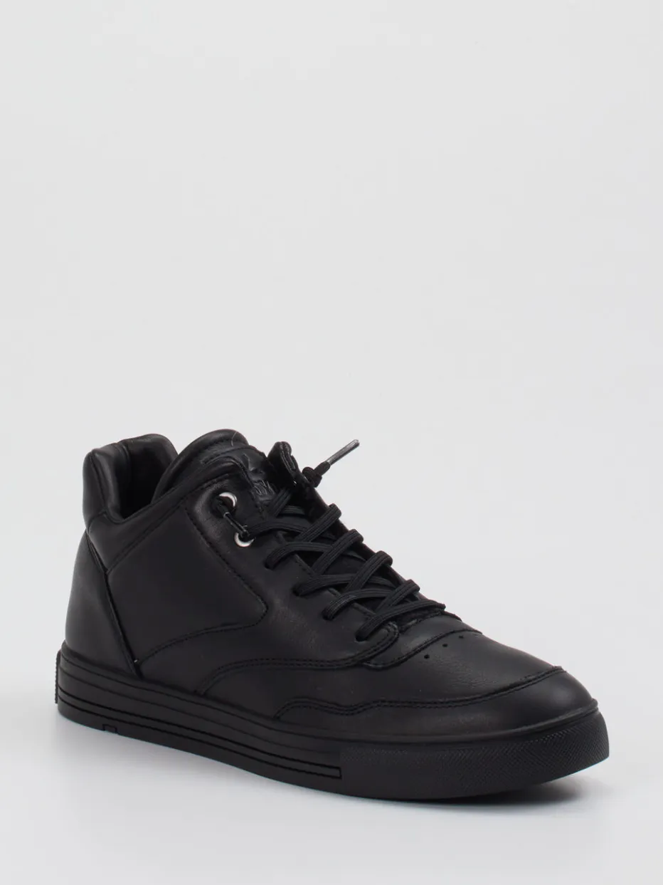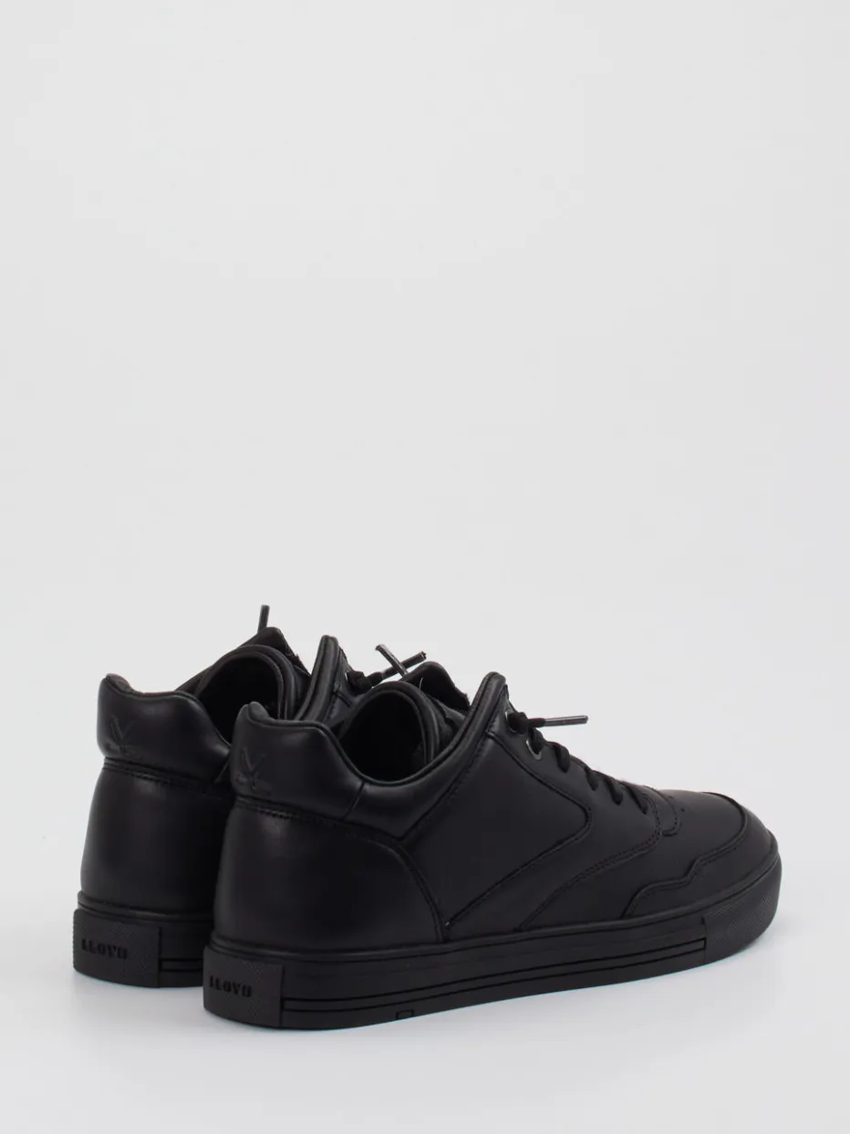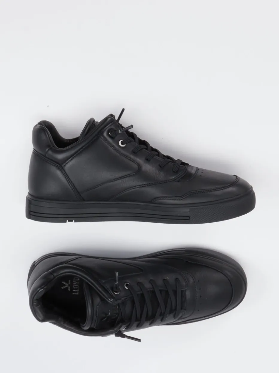 Dieser schwarze Mid-Top-Sneaker von Lloyd verbindet hochwertiges Kalbleder mit urbanem Minimalismus – für stilbewusste Freizeitlooks mit Komfortanspruch.