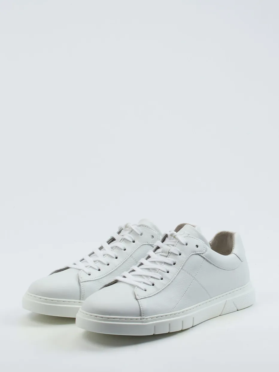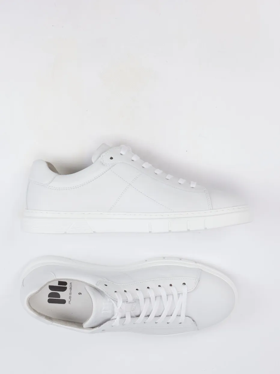 Zurückhaltender Stil, vorausschauend durchdacht.Pius Gabor präsentiert mit diesem weißen Sneaker eine minimalistische Unisex-Variante für Alltag und Business. Der flach geschnittene Low-Top überzeugt durch hochwertiges Kalbleder mit fein genarbter Oberfläche und sorgt dank ressourcenschonendem Textilfutter sowie Wechselfußbett für exzellenten Komfort. Ton-in-Ton-Nähte, ein geprägtes Logo auf der Zunge und der gepolsterte Schaftrand unterstreichen den reduzierten Streetwear-Look. Die profilierte Gummisohle aus Recyclingmaterial stützt den Fuß optimal. Ein idealer Begleiter für puristische Outfits von Slim-Jeans bis Chino. Zeitgemäß urban mit Fokus auf Qualität und zurückhaltendem Design.