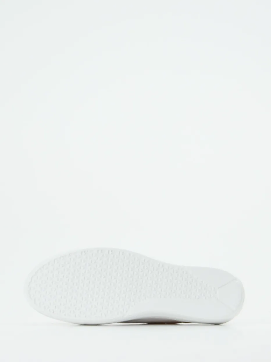 Casual trifft auf Eleganz.Dieser Damen-Sneaker von Mania kombiniert sportives Design mit luxuriösen Materialien. Ideal für urbane Sommerlooks bietet das Modell mit weißem Lackleder und hellbeigem, gesteppter Nylonpartie einen stilvollen Auftritt. Die rund-voluminöse Silhouette ist durch eine auffällige Plateausohle betont, deren Gummiprofil sicheren Halt verspricht. Die weiße Schnürung sowie glänzende Elemente an Ferse und Zehen runden das minimalistisch-edle Design ab. Modisch im Zeichen von Quiet Luxury und Streetwear-Ästhetik lässt sich der Sneaker vielseitig – etwa zu einem beigen Trenchcoat oder einer Crossbody-Bag – kombinieren. Ein Statement-Piece mit klarer Formensprache und exzellentem Laufkomfort.