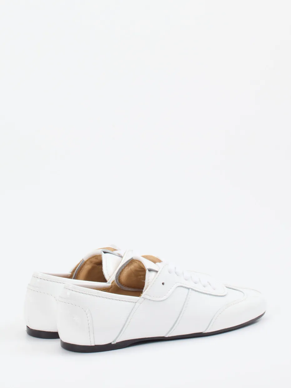Eleganz mit sportlicher Zurückhaltung.Der Damen-Sneaker von Konstantin Starke interpretiert klassische Sportswear mit edlem Touch neu. Für stilvolle Alltagswege oder das cleane Office-Outfit bietet der aus hochwertigem weißem Lackleder gefertigte Sneaker eine ideale Balance aus Glanz und Struktur. Der leicht verschlankte Leisten, die tonale Schnürung sowie die strukturierte Fersenzone unterstreichen die moderne Linienführung. Eine flache, schwarze Gummisohle sorgt für Kontrast und sicheren Tritt. Die gepolsterte Zunge und das beigefarbene Kalblederfutter erhöhen den Komfort. Seine ruhige Ausstrahlung harmoniert bestens mit minimalistischen Looks. Ein puristisches Statement moderner Designästhetik mit handwerklichem Anspruch.