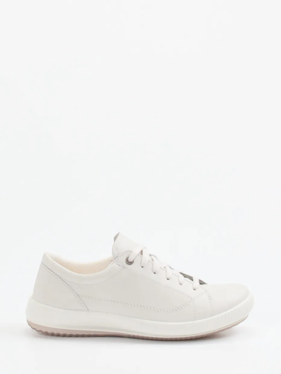 Sportlich und alltagstauglich ist dieser Sneaker „Tanaro 5.0“ der Marke Legero in der Weite G. Weißes Lammnappaleder wird durch helle Nähte sportlich abgesteppt. Die Schnürung hilft bei der individuellen Weitenanpassung. Das Fußbett ist bei Bedarf auswechselbar. Die weiß-graue Gummisohle ist rutschhemmend und flexibel.
