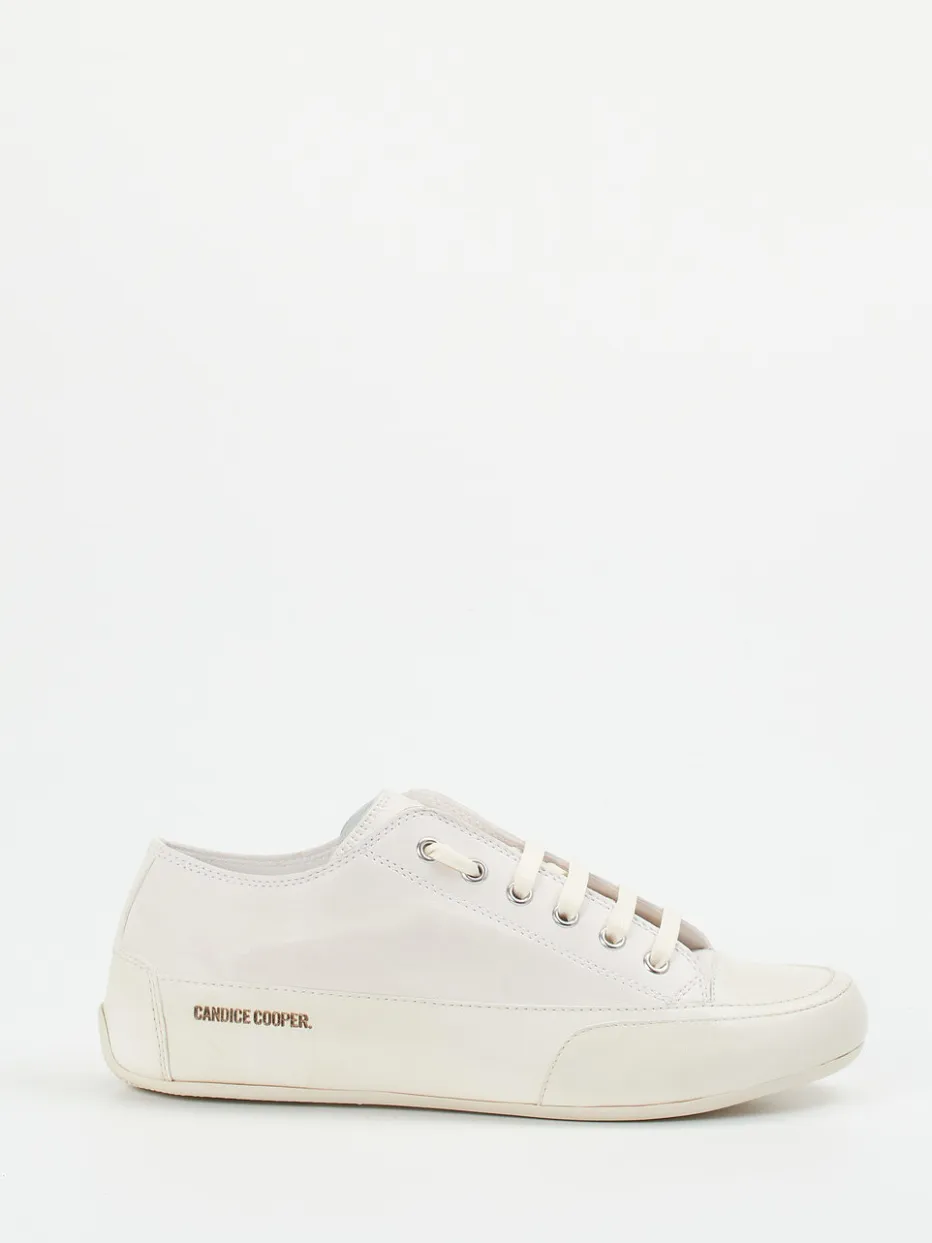 Stilvoller Minimalismus für die Straße.Der Sneaker von Candice Cooper kombiniert dezentes Design mit sportlicher Funktion – perfekt für Alltag und Freizeit. Weiße Lammleder-Partien im Used-Look treffen auf eine cremefarbene Gummisohle mit markanter COOPER-Prägung. Die schlichte Low-Top-Silhouette unterstreicht den sportlichen Look, während die hochgezogene Fersenpartie für strukturelle Stabilität sorgt. Dank ungefüttertem Innenschuh bleibt das Modell angenehm leicht. Ein ideales Pendant zu Jeans, Chino oder Cropped Pants und Ausdruck moderner Streetwear-Ästhetik. Zeitloser Komfort mit handwerklicher Signatur von Candice Cooper.