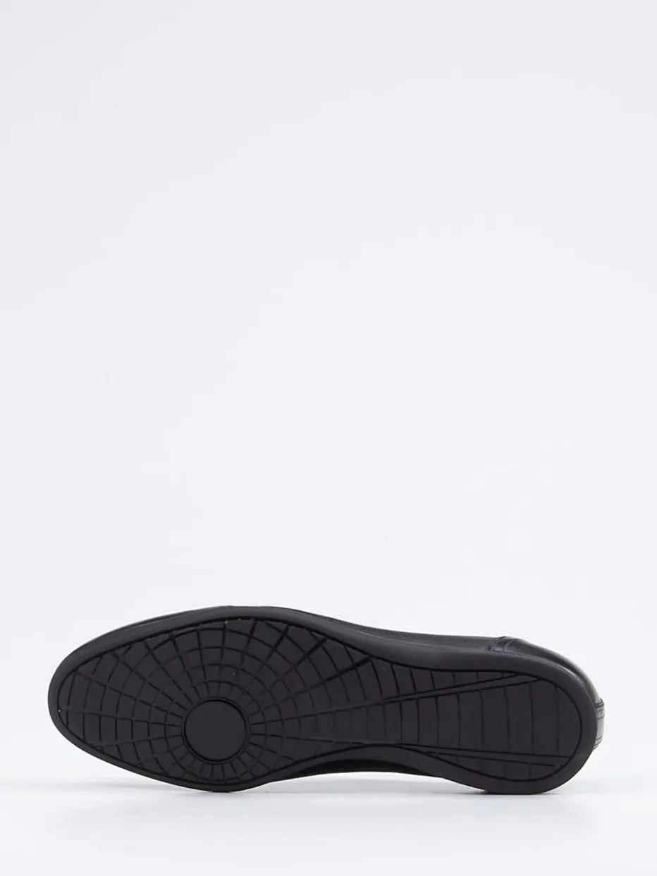 Ideal für Business-Casual und urbane Freizeit-Looks überzeugt das Modell mit schwarzem, genarbtem Lammleder und leicht glänzender Oberfläche. Die schmal zulaufende Form, Ton-in-Ton-Nähte und ein cognacfarbenes Kalblederfutter unterstreichen den dezenten Luxus-Charakter. Eine flexible Gummisohle mit strukturierter Unterseite sorgt für sicheren Tritt, während gepolsterter Einstieg und wechselbares Fußbett Tragekomfort auf hohem Niveau ermöglichen. Der Sneaker vereint Anklänge an Retro-Design mit moderner Zurückhaltung.