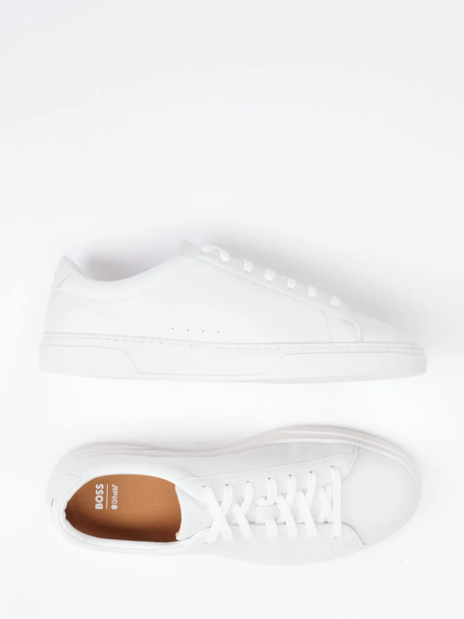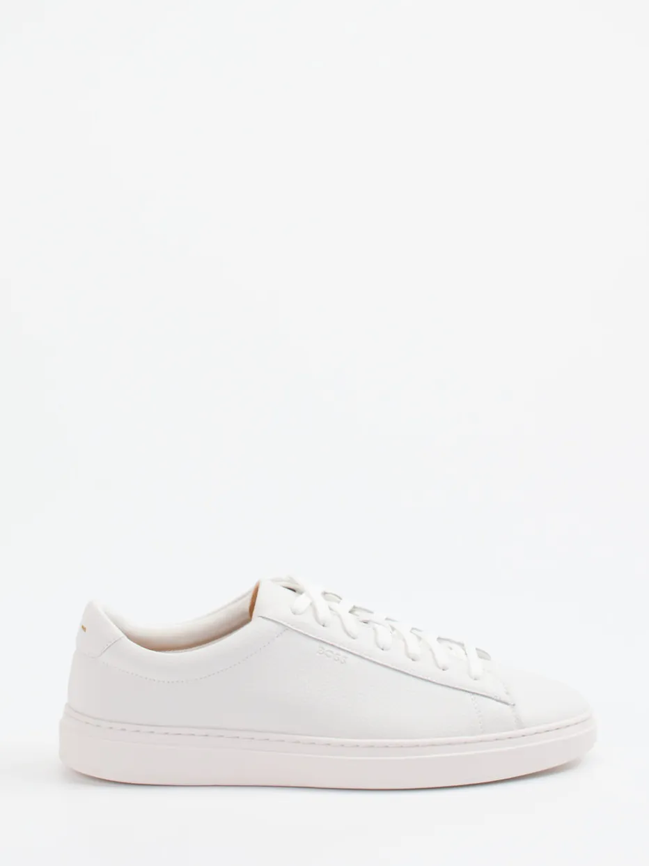 Minimalistischer Stil für vielseitige Looks.Boss präsentiert einen Herren-Sneaker mit klarer Formsprache und urbaner Eleganz. Ideal für Alltag und Büroanlässe überzeugt das Modell durch hochwertiges Leder mit genarbter Oberfläche in stilvollem Off-White. Die klassische Rundsilhouette, Ton-in-Ton-Nähte und eine dezente Logo-Prägung unterstreichen den ästhetischen Anspruch. Eine flache Gummisohle sorgt für leichte Dämpfung und Grip. Die Kombination aus klarer Linienführung, schnörkellosem Design und Streetwear-Einfluss platziert diesen Sneaker im Trendfeld „Quiet Luxury“. Optimal zu weißen Socken oder hellen Chinos. Ein charakterstarkes Modell mit markentypischer Wertigkeit.