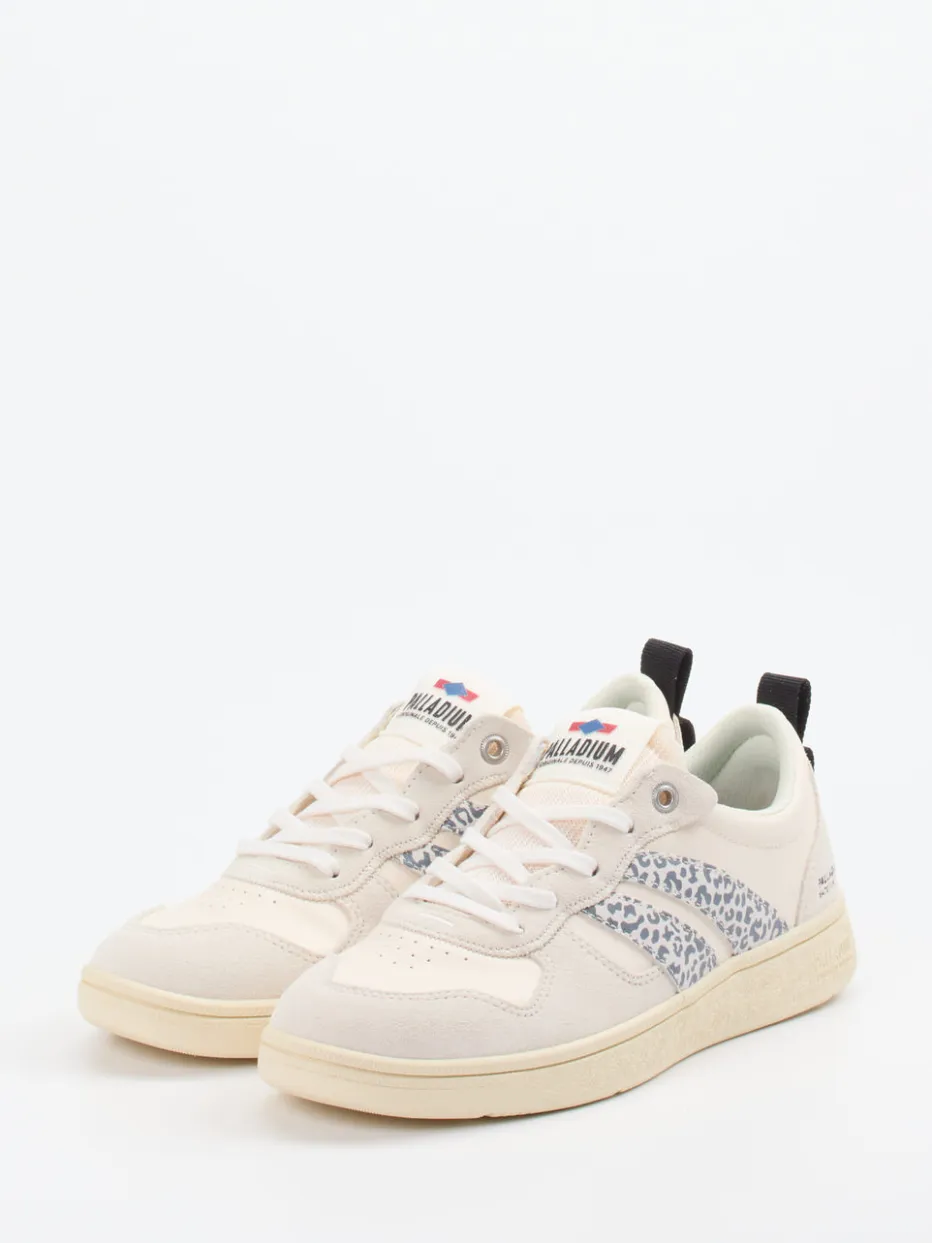 Streetstyle trifft Komfort.Palladium präsentiert einen modischen Sneaker in klassischer Low-Top-Silhouette. Für entspannte Alltagsmomente und urbane Freizeitlooks bietet dieser Sneaker aus Leder – ergänzt durch samtig strukturiertes Wildleder – eine stimmige Verbindung aus Stil und Alltagstauglichkeit. Die cremeweiße Grundfarbe trifft auf einen grauen Animalprint-Einsatz im seitlichen Bereich, veredelt durch feine Logo-Details auf Ferse und Zunge. Schnürung, gepolsterter Einstieg und eine robuste Gummisohle komplettieren das retro-inspirierte Streetwear-Design. Ein optimaler Begleiter zu Jogpants oder Shorts. Stilbetont mit sportlichem Heritage – Palladium steht für lässige Details und tragbaren Trend.