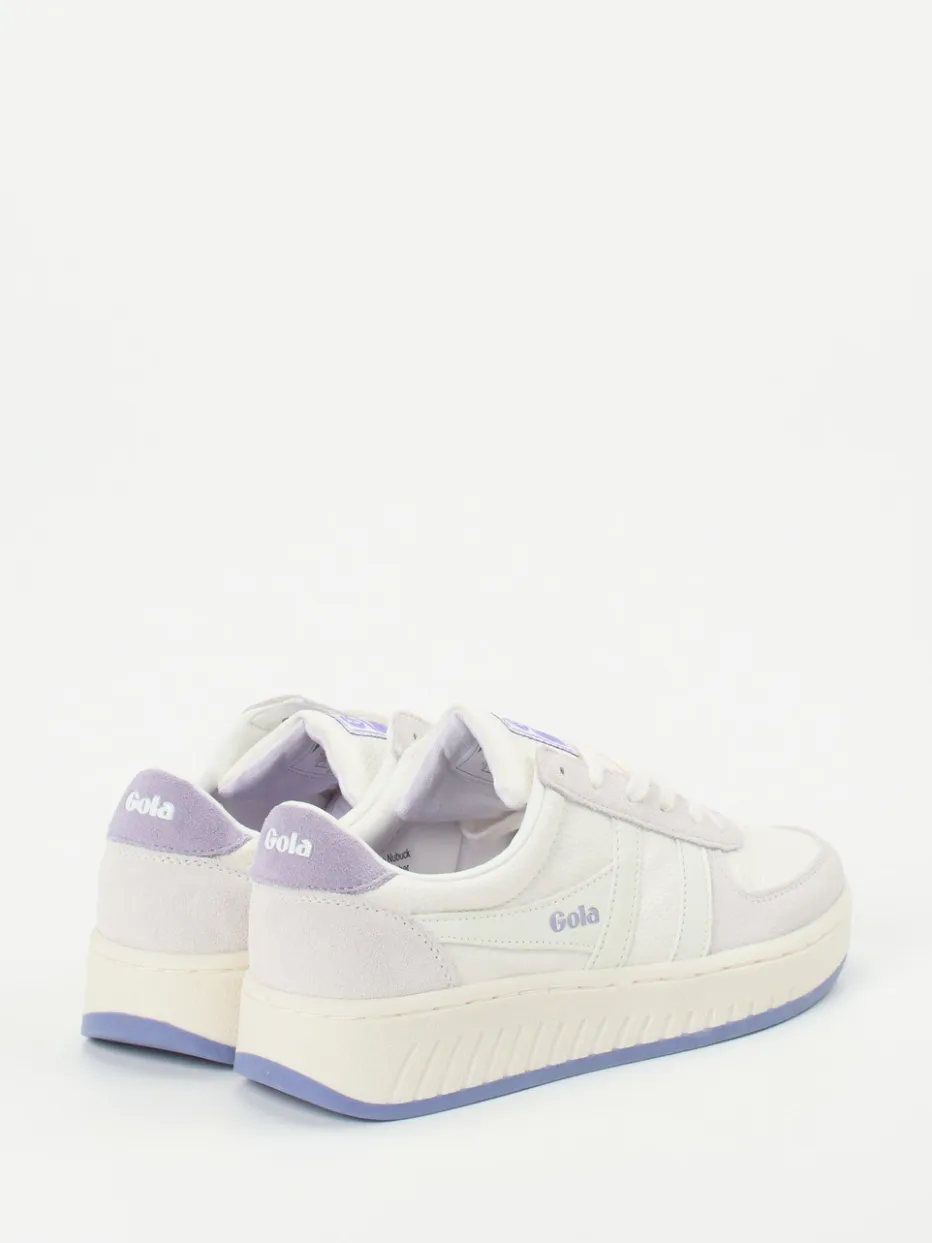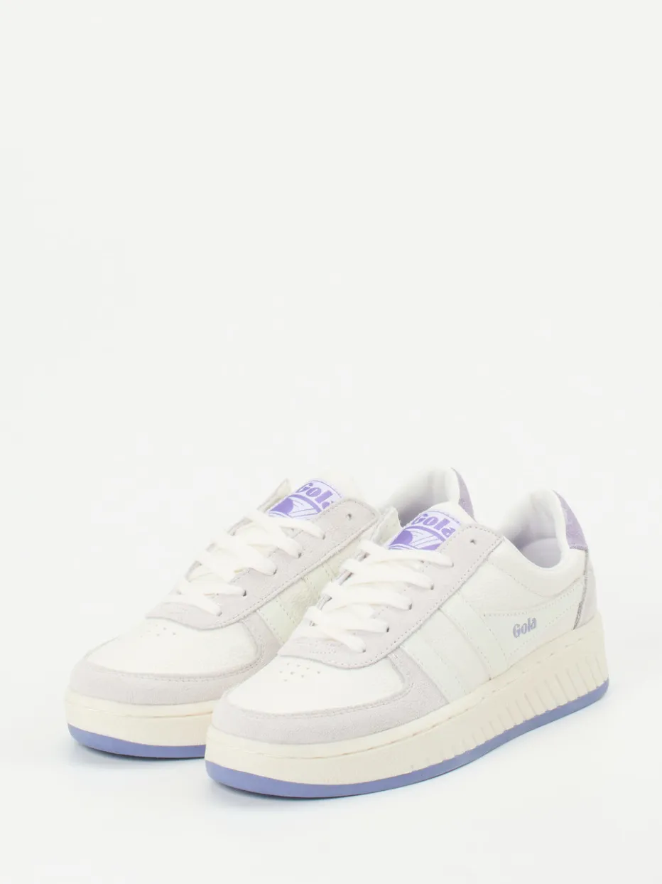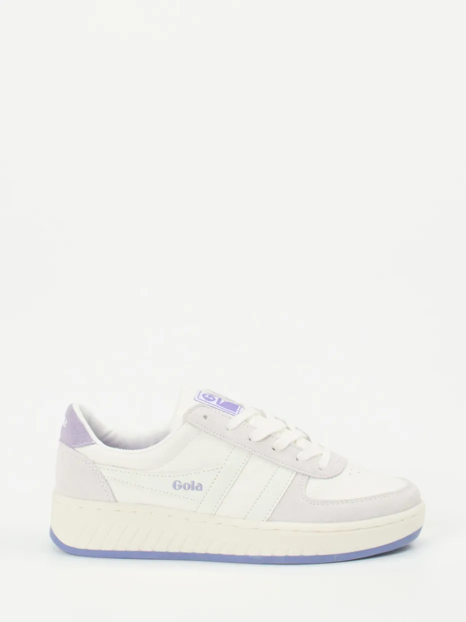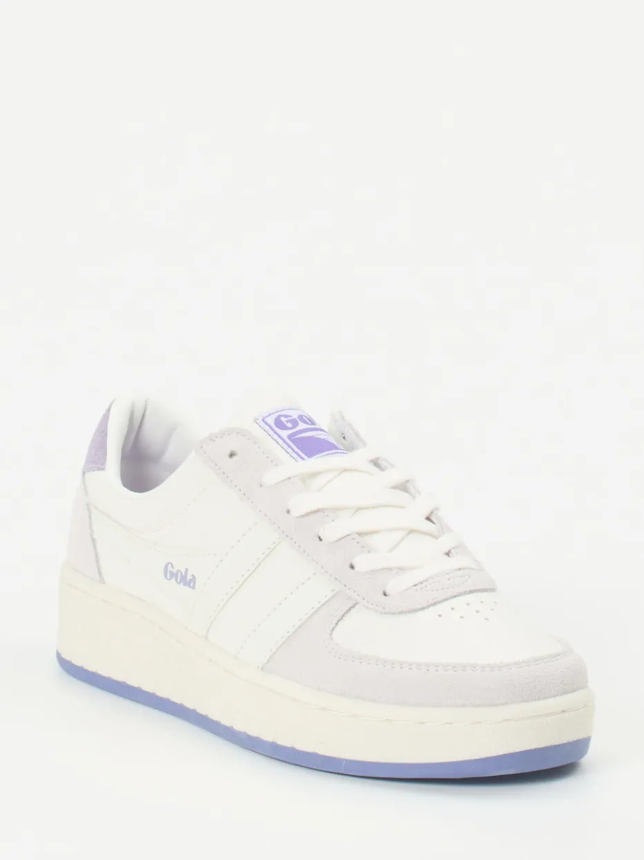 Stilvoll durch den Alltag.Gola präsentiert einen Damen-Sneaker mit subtiler Farbgebung und trendigem Retro-Appeal. Für entspannte City-Tage oder den Weg zum Lieblingscafé bietet dieser Low-Top Sneaker zuverlässigen Komfort. Weißes Nubukleder trifft auf samtig angeschliffenes Veloursleder in Flieder und Hellgrau; die genarbte Oberfläche ergänzt den hochwertigen Look. Lavendelfarbene Elemente wie die Gummisohle oder das Wechselfußbett setzen sanfte Akzente. Die klassische Silhouette mit Schnürung, Logo-Prints und gepolsterter Lasche sorgt für angenehmen Tragekomfort und verleiht einen sportlich-eleganten Auftritt. Passt ideal zu Cropped Jeans und minimalistischen Outfits. Gola steht für stilbewusste Designs mit durchdachter Alltagstauglichkeit.