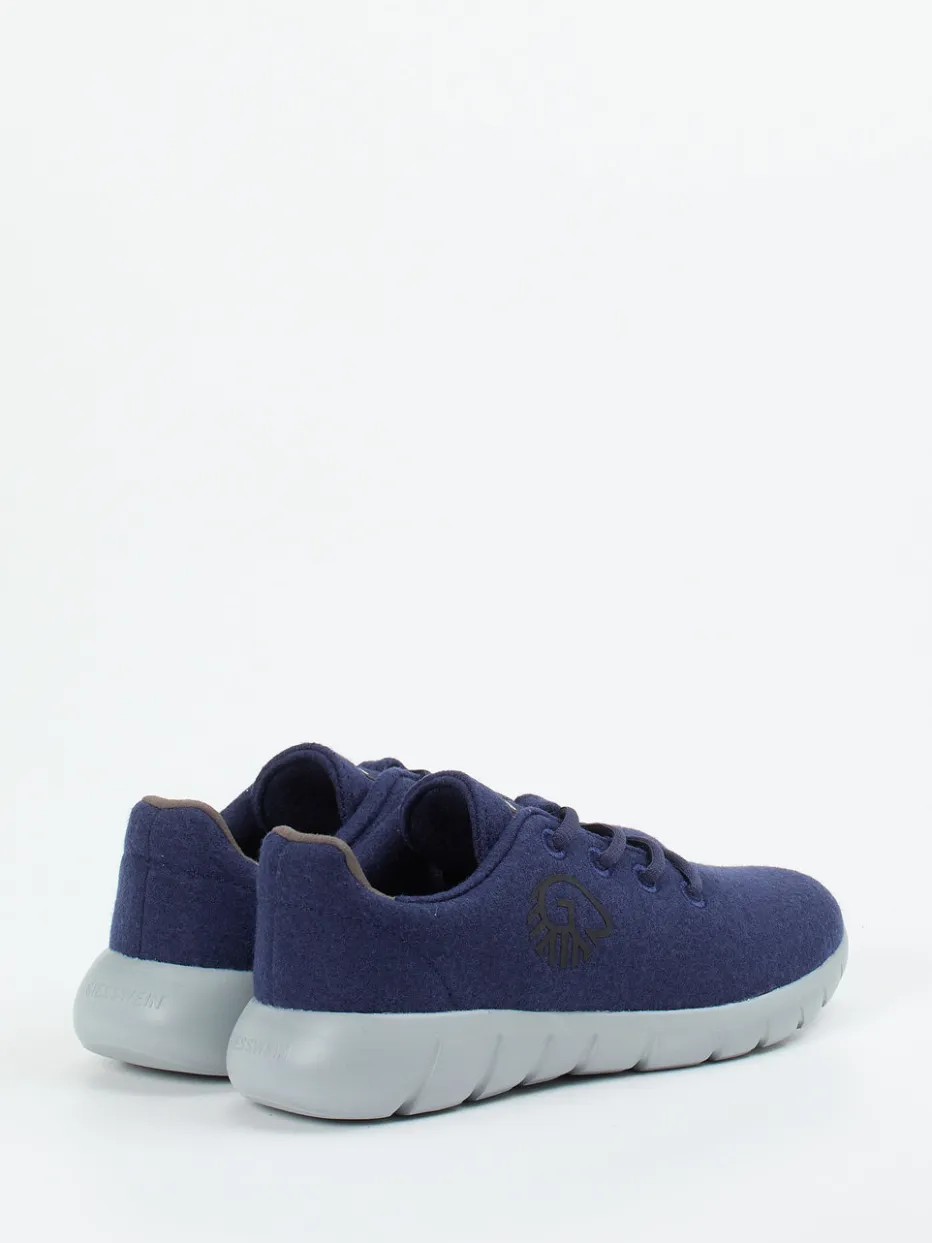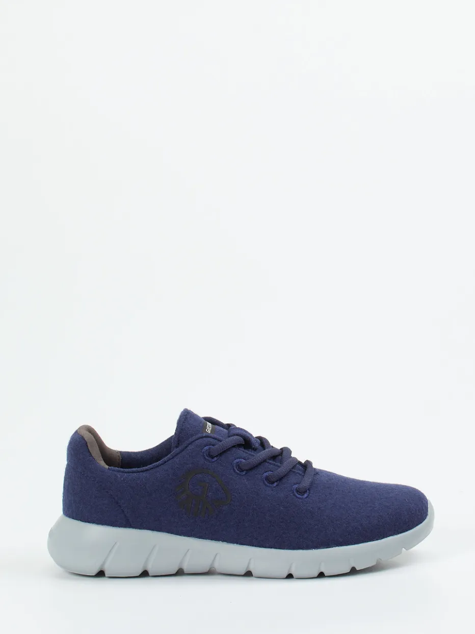 Viel Komfort für entspannte Tage.Giesswein präsentiert einen Sneaker, der Alltagstauglichkeit und Hausschuhkomfort vereint. Ideal für entspannte Freizeitmomente: Der dunkelblaue Low-Top-Sneaker überzeugt mit atmungsaktivem Merinowollfilz, samtiger Textur und einer superleichten, flexiblen PU-Sohle in Hellgrau. Die klassische Rundform mit gepolstertem Einstieg, dezente Ton-in-Ton-Logoapplikation und textile Schnürung sorgen für einen minimalistischen Look im Athleisure-Stil. Besonders vielseitig – passt zu Casual-Outfits oder loungetauglichen Kombinationen. Die Kombination aus nachhaltigem Material und funktionalem Design unterstreicht Giessweins Fokus auf Wohlbefinden in jeder Alltagssituation.