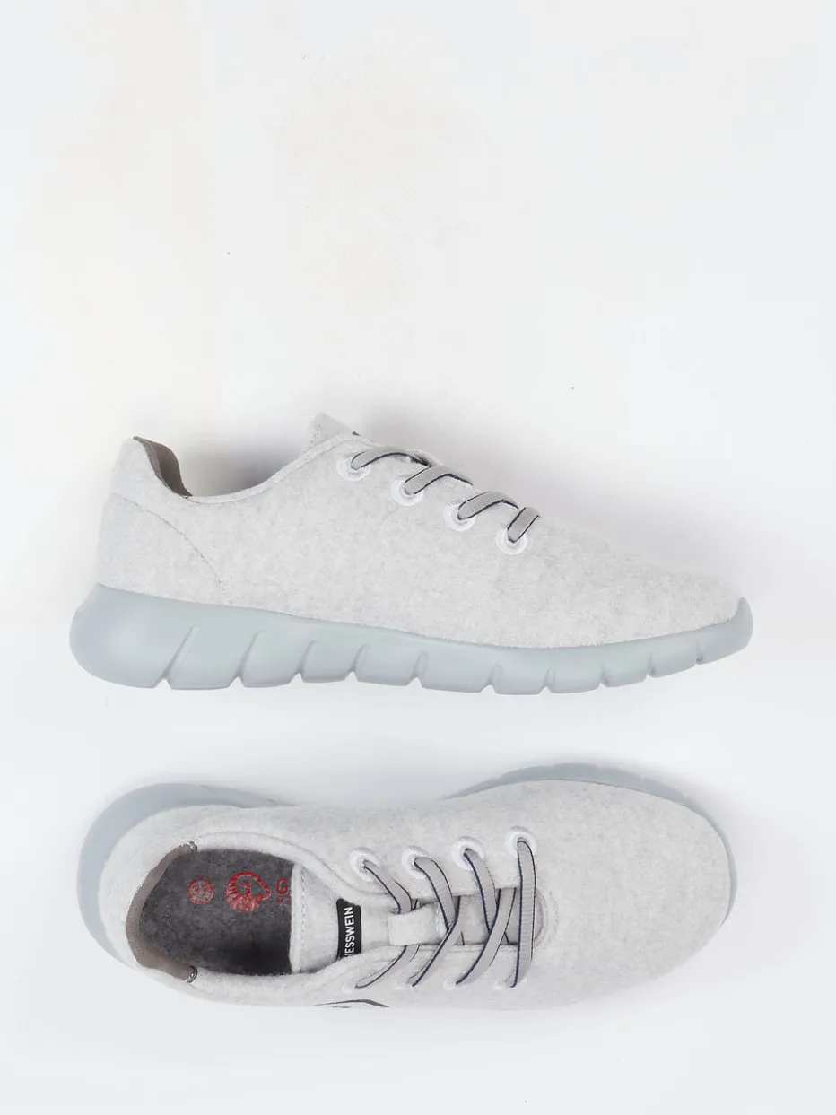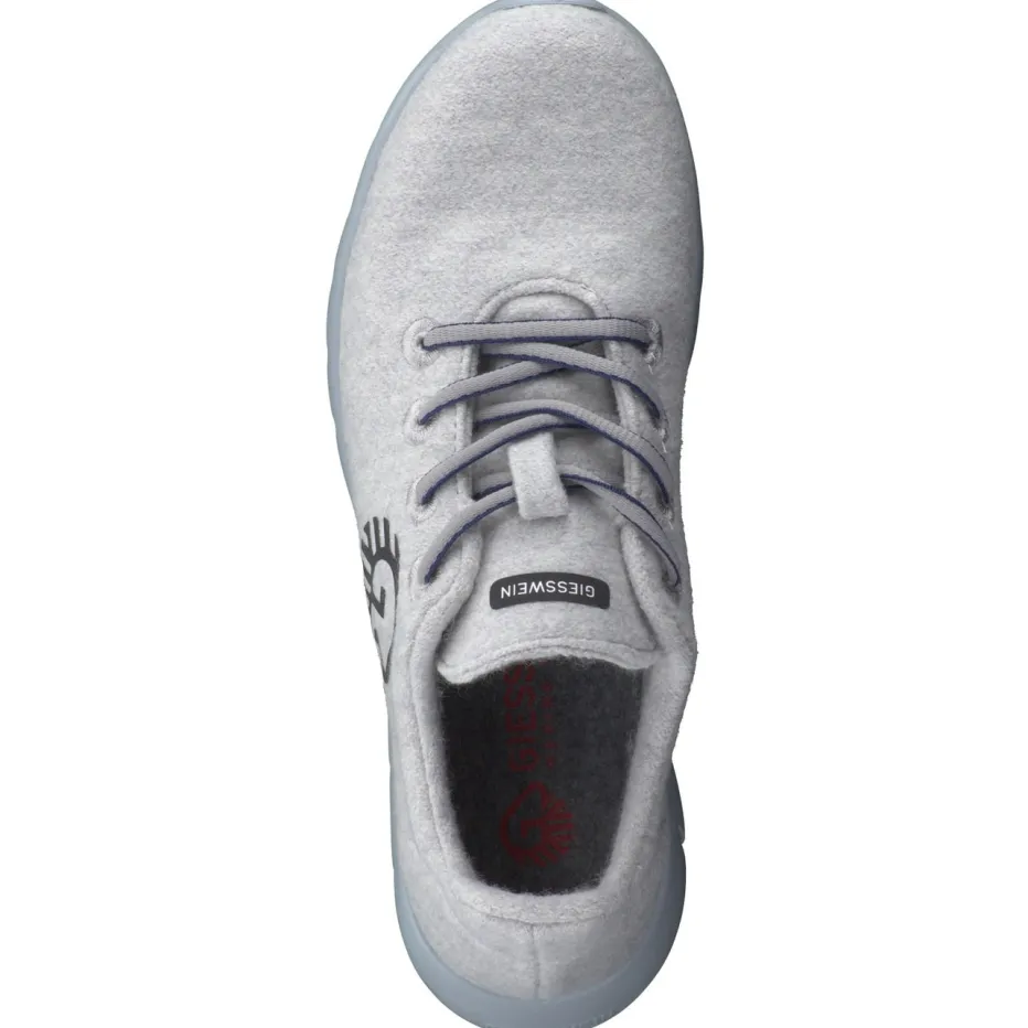 Komfort trifft minimalistisches Design.Giesswein präsentiert mit diesem Sneaker aus 100 % Merinowolle ein Modell der Kategorie Low-Top für entspannten Alltagseinsatz. Ideal für ruhige Tage zu Hause oder tägliche Erledigungen: Die fein gebürstete, hellgraue Merinowolle schenkt ein angenehmes Fußklima und unterstreicht den natürlichen Look. Der ergonomische Schnitt sowie die ultraleichte PU-Sohle mit Flexrillen sorgen für ausgezeichneten Gehkomfort. Dezente Ton-in-Ton-Schnürung und ein zurückhaltendes Seitenlogo betonen den athleisure-inspirierten Stil. Das Modell passt hervorragend zu schlichten Hose-Pullover-Kombis oder zum lässigen Homewear-Look. Giesswein verbindet Funktionalität und Ästhetik in nachhaltiger Materialqualität.