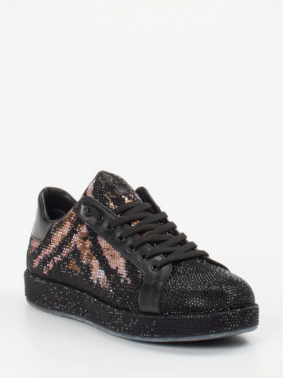 Ein expressiver Sneaker von Rise, der durch metallischen Glanz, Allover-Strass und trendigen Animal-Print Streetstyle und Glamour vereint. Ideal für auffällige Looks mit Y2K-Flair.