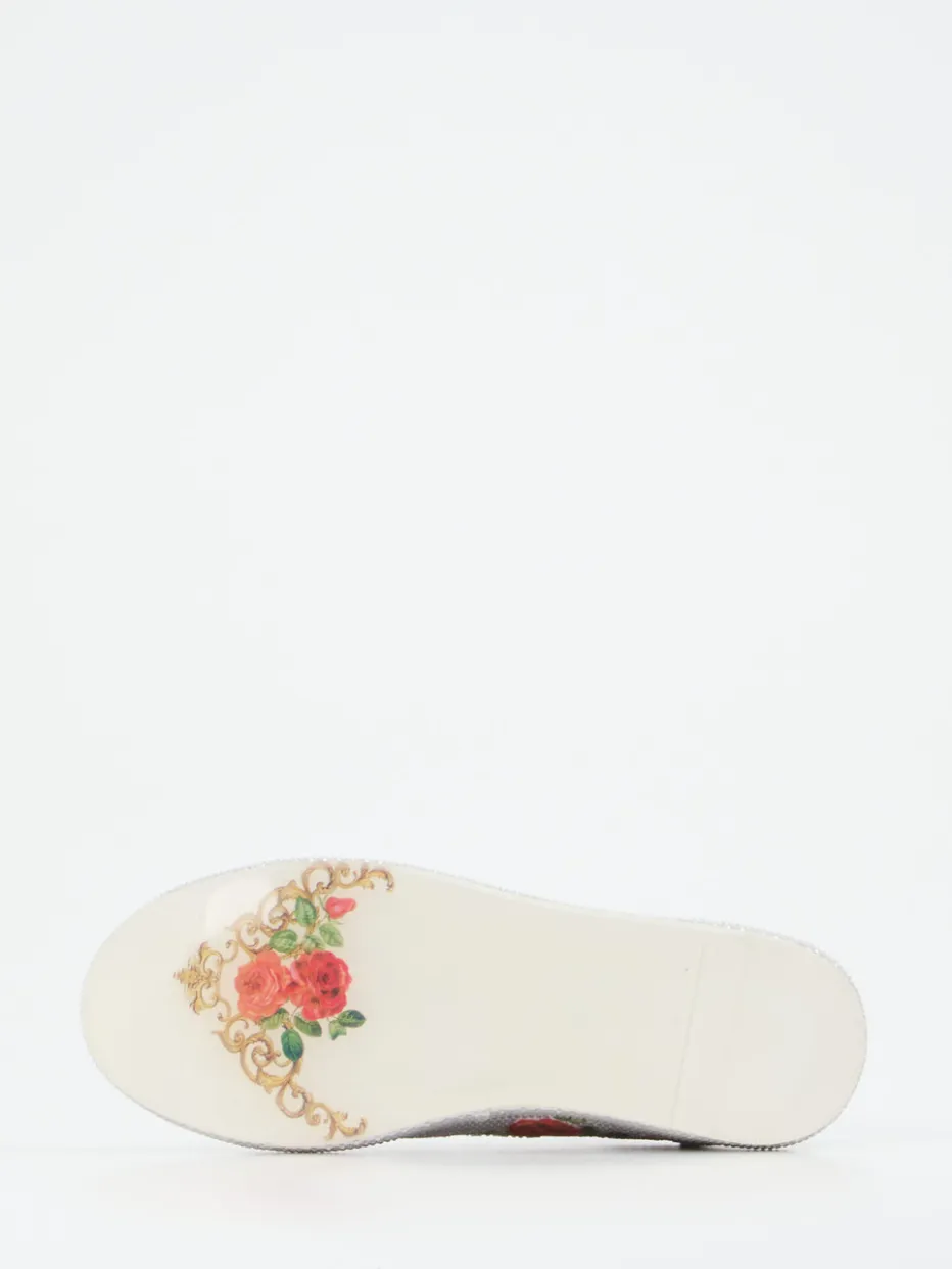 Der Rise Sneaker inszeniert luxuriöse Streetwear mit floraler Raffinesse. Strass, Print und Metallic-Finish verbinden sich zu einem selbstbewussten Style-Statement.