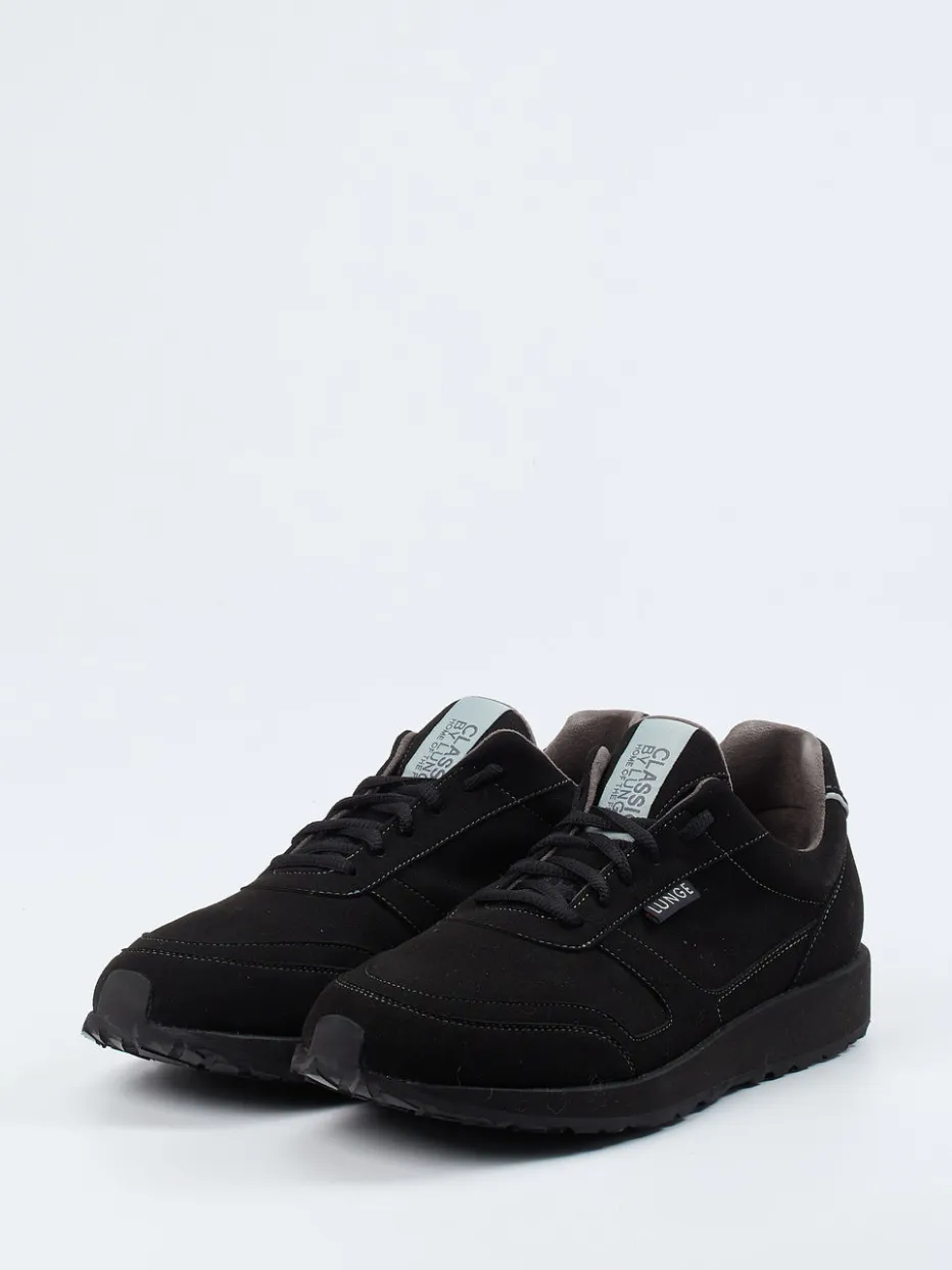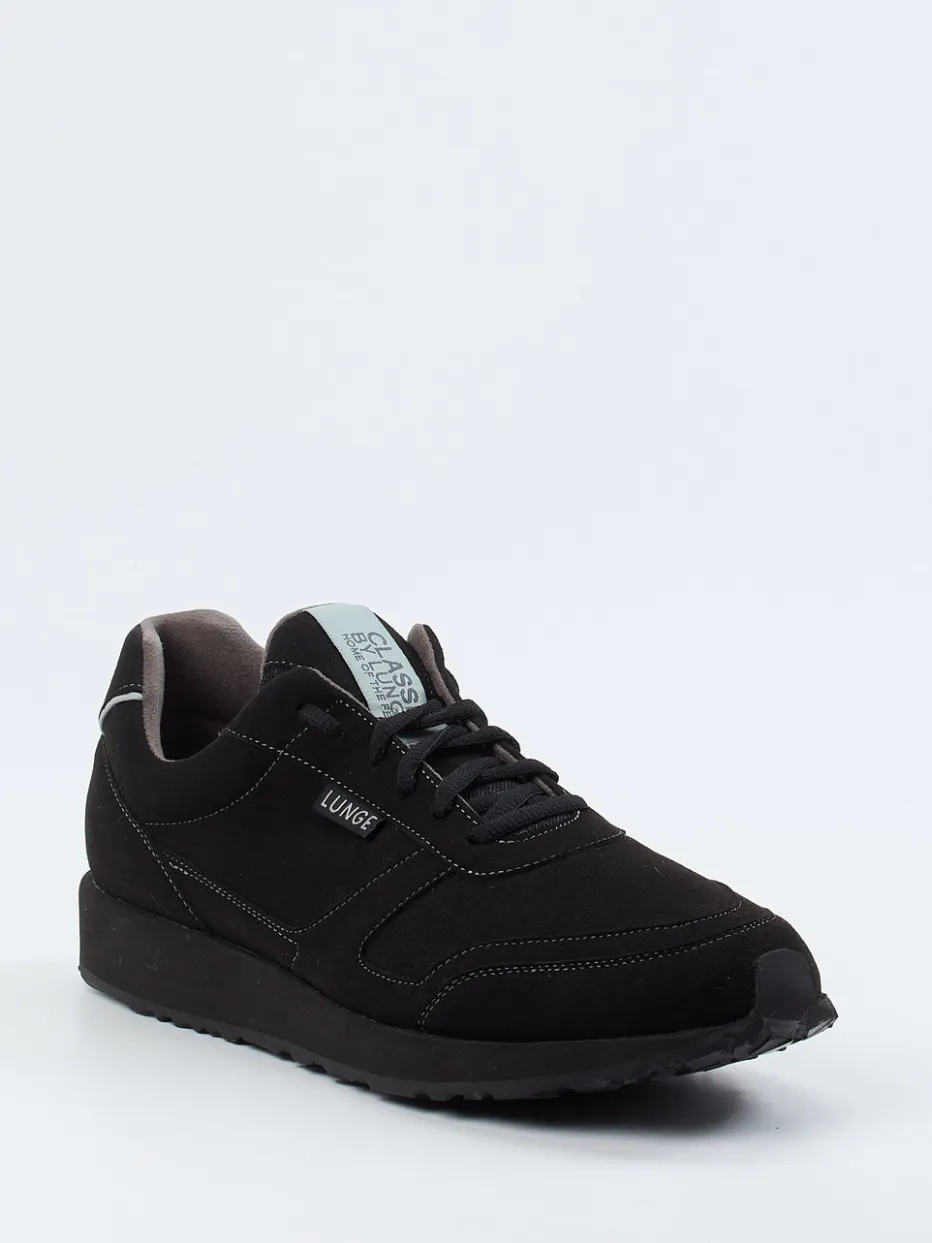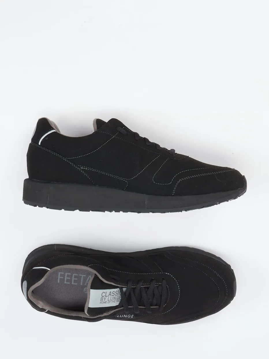 Minimalistische Retroästhetik trifft Funktionalität.Der Sneaker von Lunge verkörpert sportliche Lässigkeit mit klarem Design. Er unterstützt aktive Tage mit einem atmungsaktiven Obermaterial aus samtig angeschliffenem Mikrofaser-Velours in Schwarz und einer komfortablen Passform. Die low-cut Silhouette und die reflektierenden Details an der Ferse unterstreichen den funktionalen Anspruch. Innen sorgt ein weiches Textilfutter mit ergonomisch geformtem Fußbett für Wohlgefühl – auch bei Nutzung eigener Einlagen. Die profilierte Gummisohle bietet sicheren Tritt im urbanen Alltag. Reduzierte Kontrastnähte und Streetwear-Anleihen machen das Modell trendgerecht. Hochwertige Verarbeitung mit Komfortfokus – typisch Lunge.