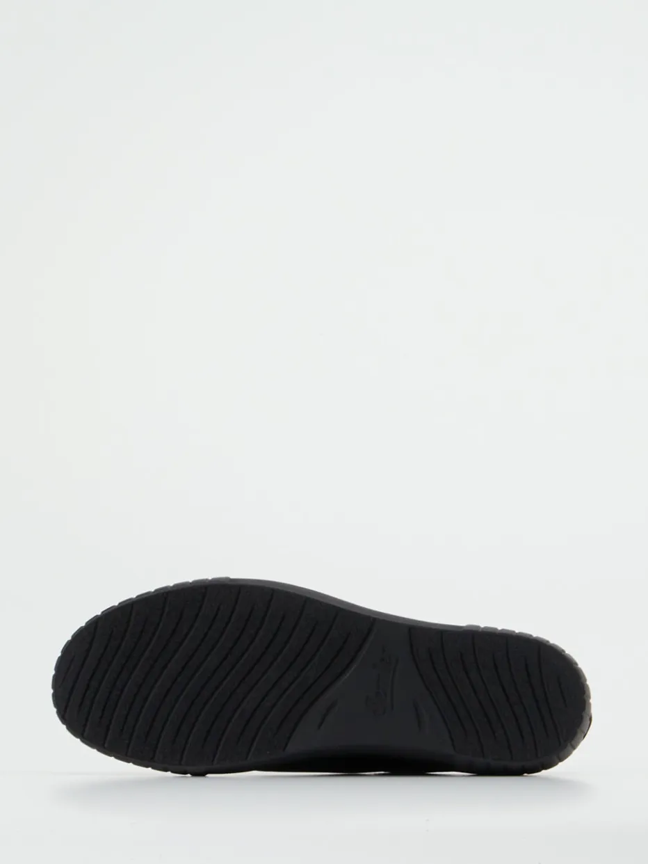 Minimalismus trifft Komfort.Semler zeigt mit diesem Sneaker der Form Pamela eine elegante Lösung für komfortbetonte Streetwear-Looks. Ideal für lange Arbeitstage oder entspannte Freizeitstunden: Der tiefschwarze Low-Top-Sneaker aus weichem Nubukleder bringt durch samtige Haptik und glänzende Lackeinsätze an Ferse und Lasche eine dezente Raffinesse ins Outfit. Die klassische Form mit silberfarbenen Ösen, profilierter Gummisohle und herausnehmbarem Wechselfußbett bietet funktionale Wertigkeit. Im angesagten „Quiet Luxury“-Trend verankert, passt er hervorragend zu monochromen Layering-Styles. Besonders harmonisch wirkt das Modell zu Wollmantel und Leder-Bag. Hochwertiges Design mit Komfortfokus – stilprägend von Semler.