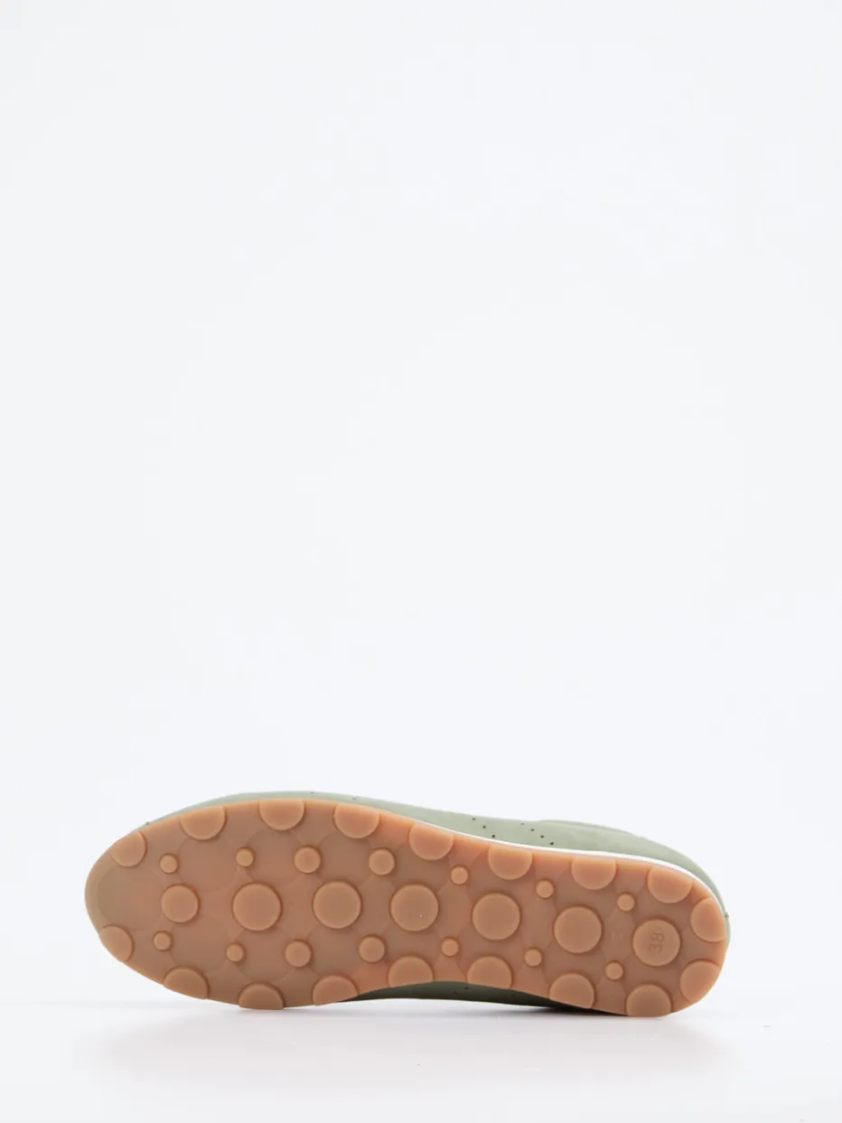 Dieser Sneaker verbindet samtiges Nubukleder mit Retro-Flair in Salbeigrün – stilvoll, komfortabel und ideal für entspannte Looks.