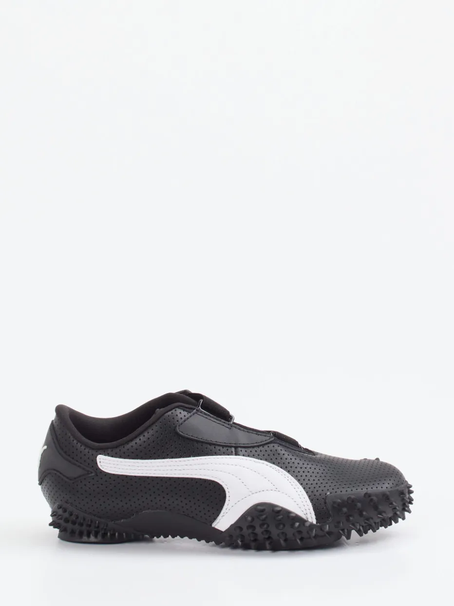 Retro-Futurismus zum Anziehen.Puma bringt mit diesem Sneaker kraftvolle Statement-Ästhetik in die Freizeit. Ideal für urbane Styles und sportlich-expressive Looks: Das perforierte schwarze Leder sorgt für angenehme Belüftung und unterstreicht den Y2K-inspirierten Charakter. Der flache, sportliche Schnitt wird durch einen funktionalen Klettverschluss ergänzt. Eine strukturierte Gummisohle mit Außenspitzen verleiht außergewöhnliche Bodenhaftung und betont das markante Design. Das weiße Branding setzt starke Kontraste zur dunklen Grundfarbe. Inspiriert von Techwear und dem Gorpcore-Trend wirkt der Look avantgardistisch und progressiv. Ein Sneaker mit ikonischem Silhouetten-Claim für individuelle Stilfreiheit.