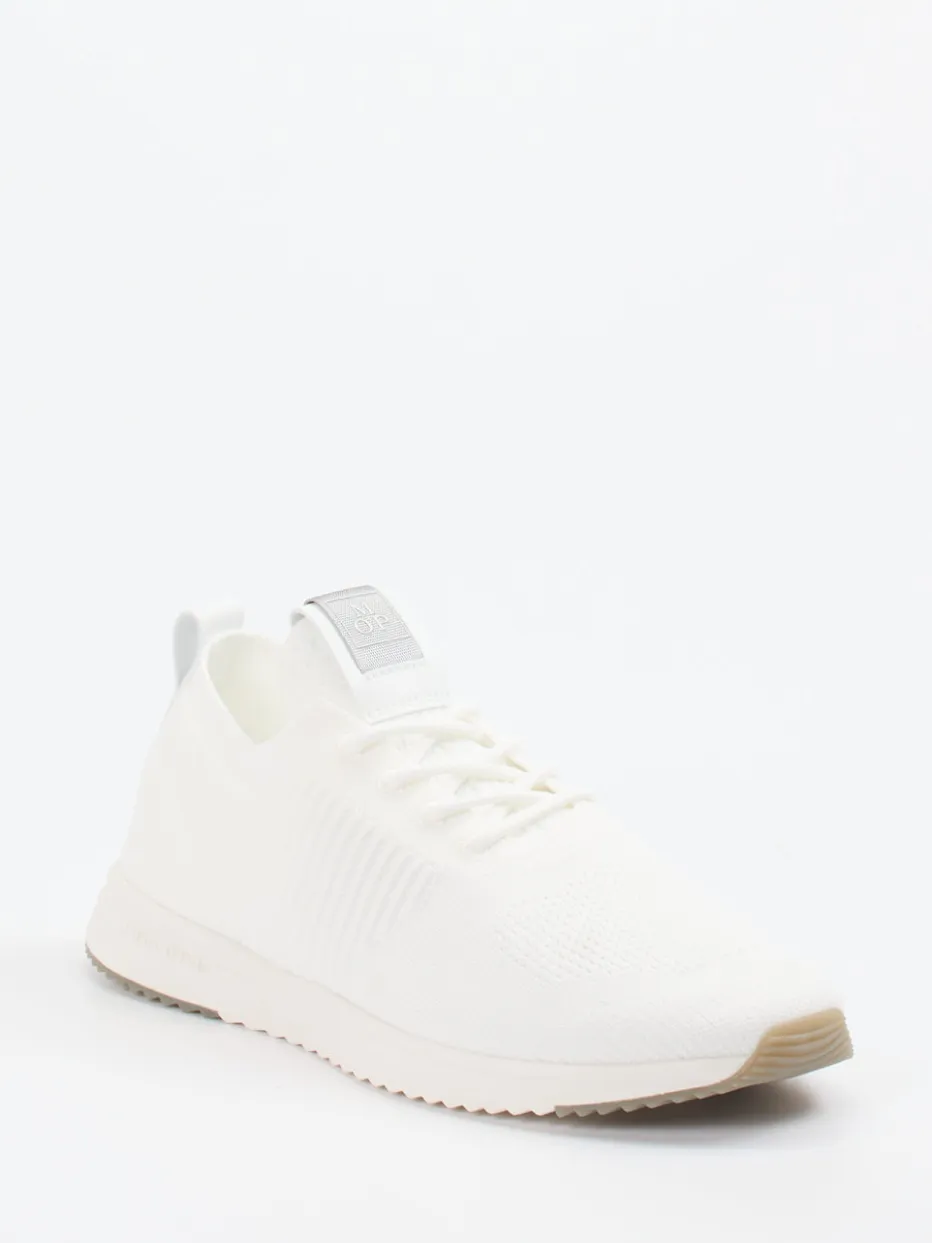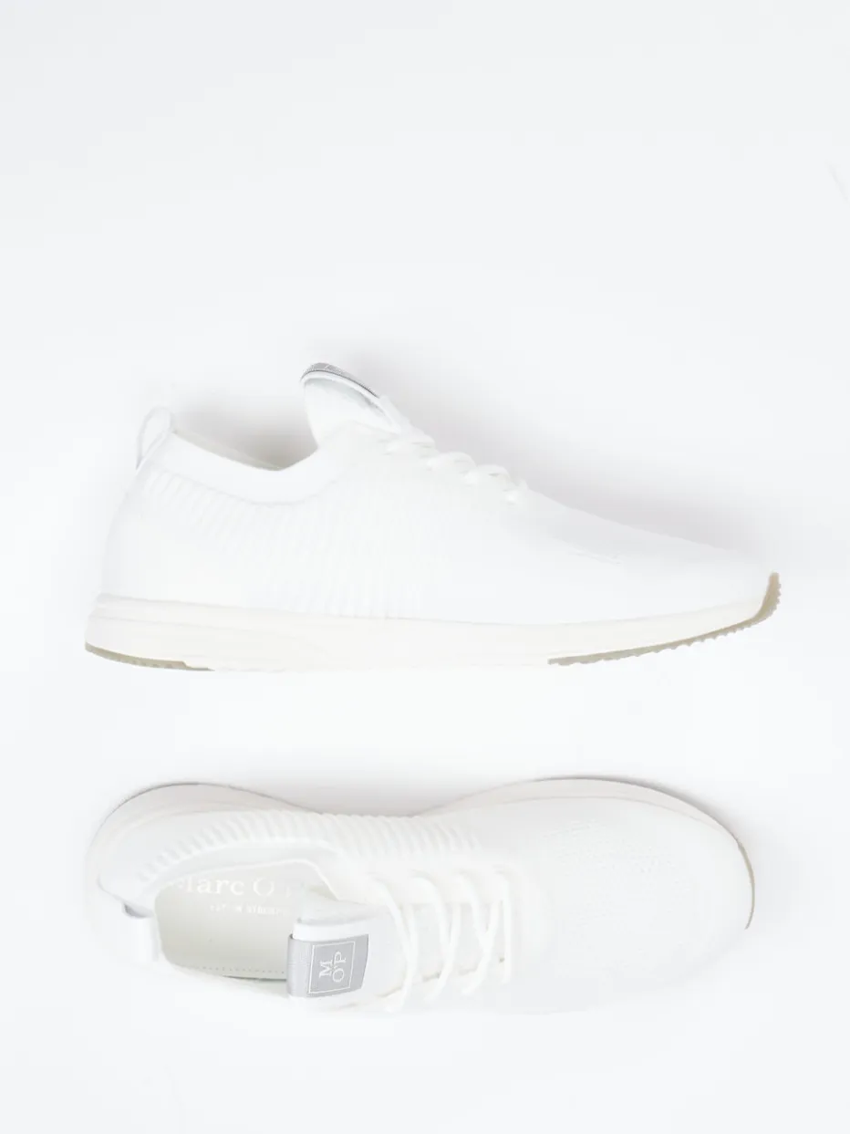 Leichtigkeit trifft auf modernen Stricklook.Marc O’Polo präsentiert diesen Sneaker aus der Kategorie Low-Top Stricksneaker. Ideal für warme Tage und entspannte Outfits überzeugt das Modell mit einem schneeweißen Obermaterial aus recyceltem Textil, das gestrickt und besonders atmungsaktiv ist. Die minimalistische, schmale Silhouette erhält durch eine klare Linienführung, tonige Schnürung und feine Logo-Details eine subtile „Quiet Luxury“-Note. Unterstützt wird der Tragekomfort durch ein herausnehmbares Memory-Foam-Fußbett und eine rutschhemmende EVA-Gummisohle mit Kontrastdetail. Das unaufgeregte Design macht ihn zum perfekten Partner für sportive Casual-Looks. Ein moderner Essentials-Sneaker mit Nachhaltigkeitsanspruch und sommerlicher Leichtigkeit.