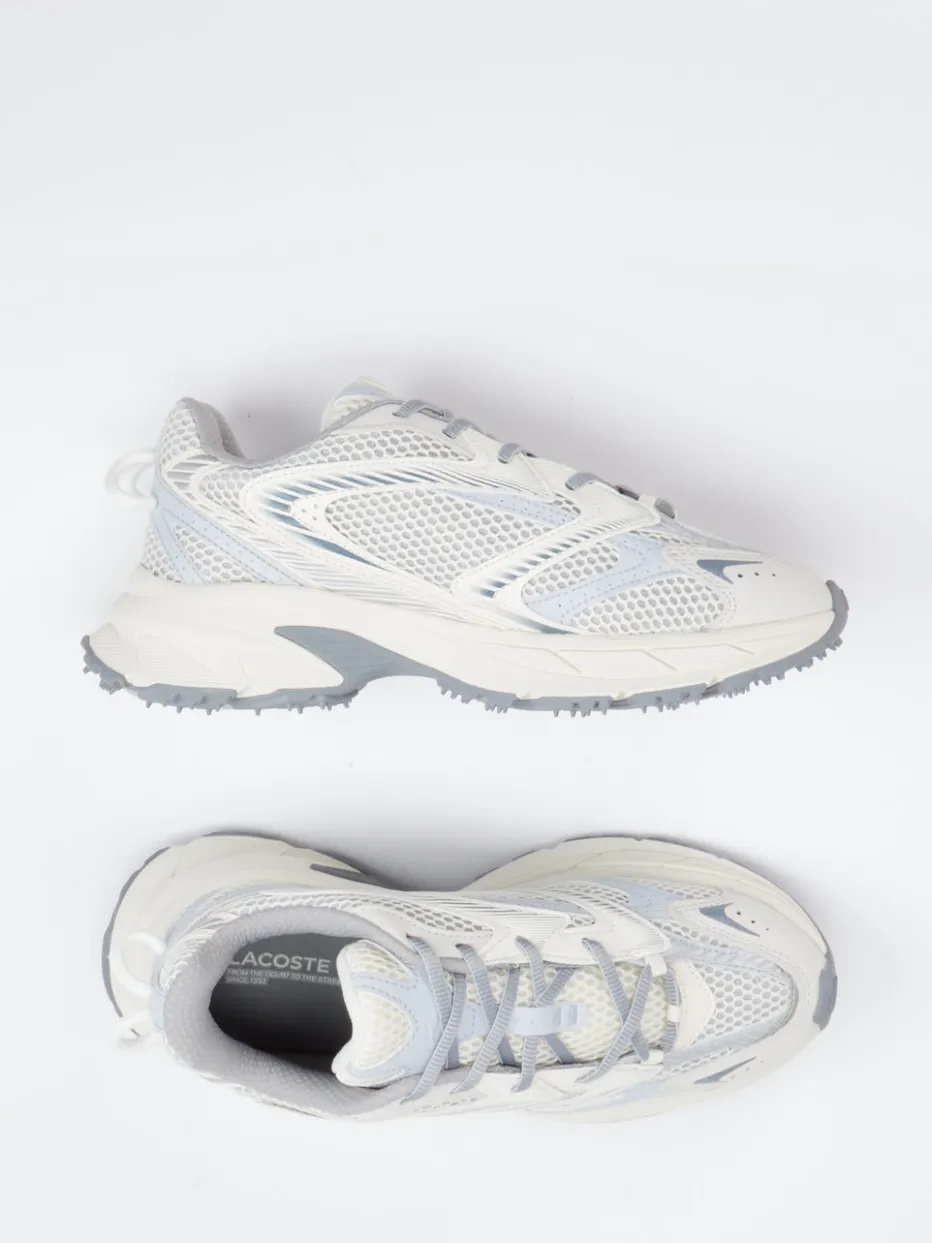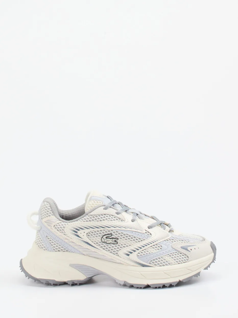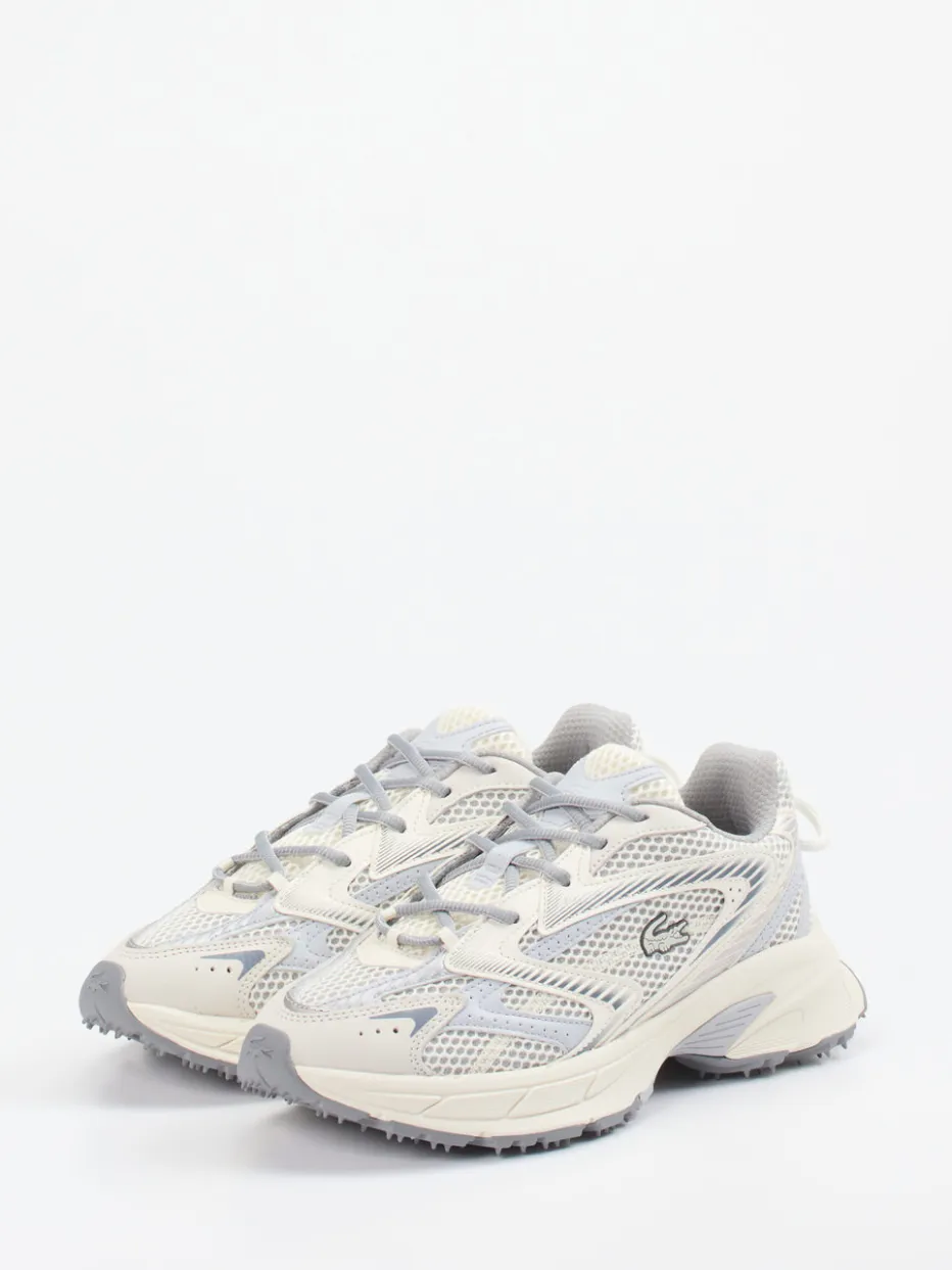 Streetwear trifft auf Trail-Komfort.Lacoste präsentiert einen Sneaker, der Outdoor-Funktion und Zeitgeist kombiniert. Für vielseitige Alltagswege oder urbane Ausflüge gemacht: Das Modell aus strapazierfähigem Textil mit Mesh-strukturierter Oberfläche überzeugt durch atmungsaktive Eigenschaften und ein komfortables Tragegefühl. Die Nuancen von Offwhite bis Hellgrau unterstreichen den minimalistischen Look, während tonale Overlays und reflektierende Details stilvolle Akzente setzen. Die sportlich-voluminöse Silhouette sorgt für Präsenz am Fuß, und eine griffig profilierte Gummisohle bietet sicheren Halt. Inspiriert von Retro-Running-Designs passt er ideal in den Gorpcore-Trend – besonders in Kombination mit funktionalen Jacken. Ein Sneaker mit dem sportlich-urbanen Signature-Charakter von Lacoste.