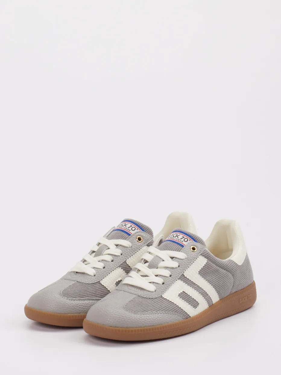 Back 70 präsentiert einen klassisch-flachen Sneaker mit Vintage-DNA und Streetstyle-Appeal. Ideal für lässige Alltagssituationen vereint dieses Modell Velour- und Textilmaterialien mit charakteristischer Cordstruktur und robuster Gummisohle. Der graue Grundton wird durch Offwhite- und Braunnuancen akzentuiert, während goldfarbene Ösen und ein Logo-Patch auf der Zunge stilprägende Akzente setzen. Eine profilierte Retro-Sohle mit Markenprägung ergänzt den vom 90er-Stil inspirierten Look. Der Schnürverschluss und das Textilfutter sorgen für Komfort im urbanen Alltag. Stylisch kombinierbar mit Cord-Cap oder Retro-Rucksack. Zeitgemäßer Retro-Look mit hohem Wiedererkennungswert von Back 70.