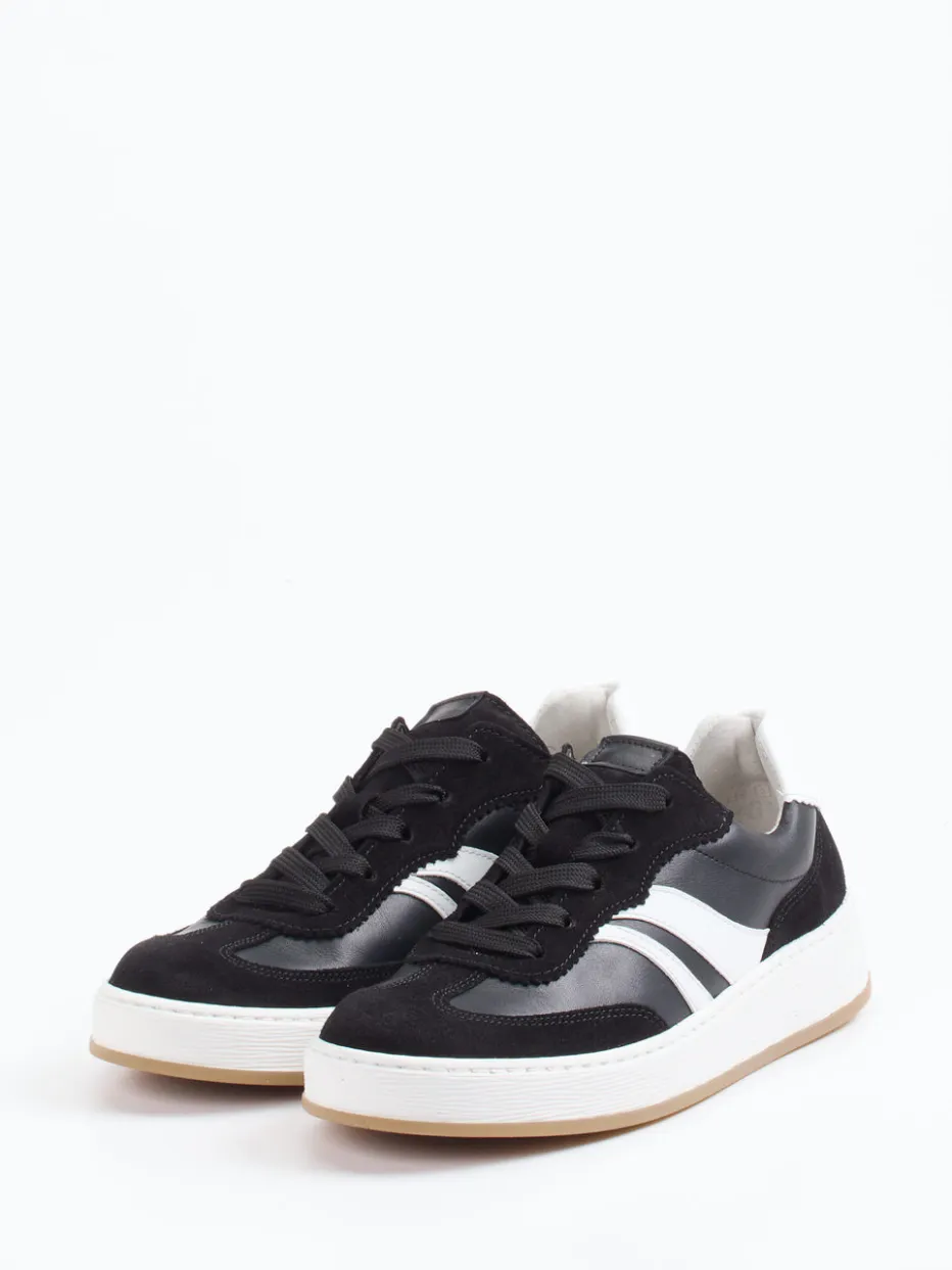 Klassisch-runder Damen-Sneaker von Gabor Comfort in schwarzem Velours- und Glattleder – weich gefüttert und mit rutschfester Profilsohle kombiniert für entspannten Komfort im Alltag.