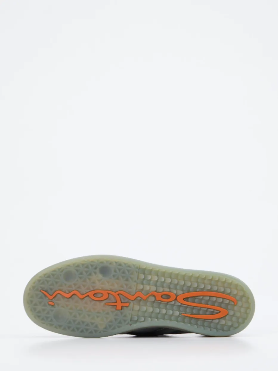 Ob fürs Büro oder entspannte Citytage – der flache Low-Top-Sneaker passt in unterschiedlichste Alltagssituationen. Das markante Veloursleder in Blaugrau verleiht dem Modell eine matte, sanfte Haptik, unterstützt durch tonale Ziernähte. Eine transluzente Gummisohle mit farblich abgesetztem Logo greift das dezente Farbspiel elegant auf. Die klassische Silhouette, kombiniert mit Schnürung und geprägtem Seitenlogo, zahlt auf aktuelle Trends wie „Quiet Luxury“ und „Retro-Sportswear“ ein. Optimal zu gedeckten Casual-Looks oder soften Business-Outfits.