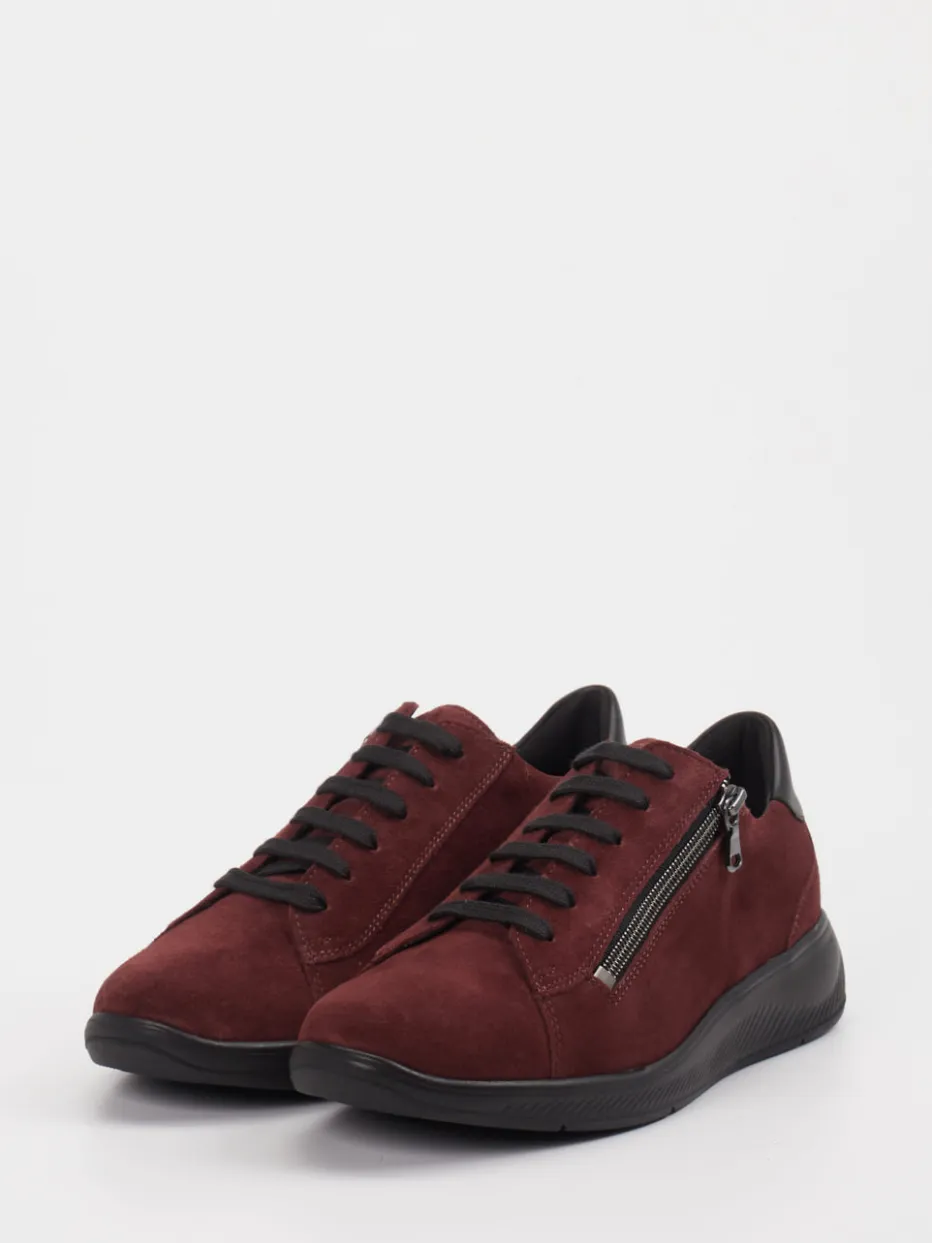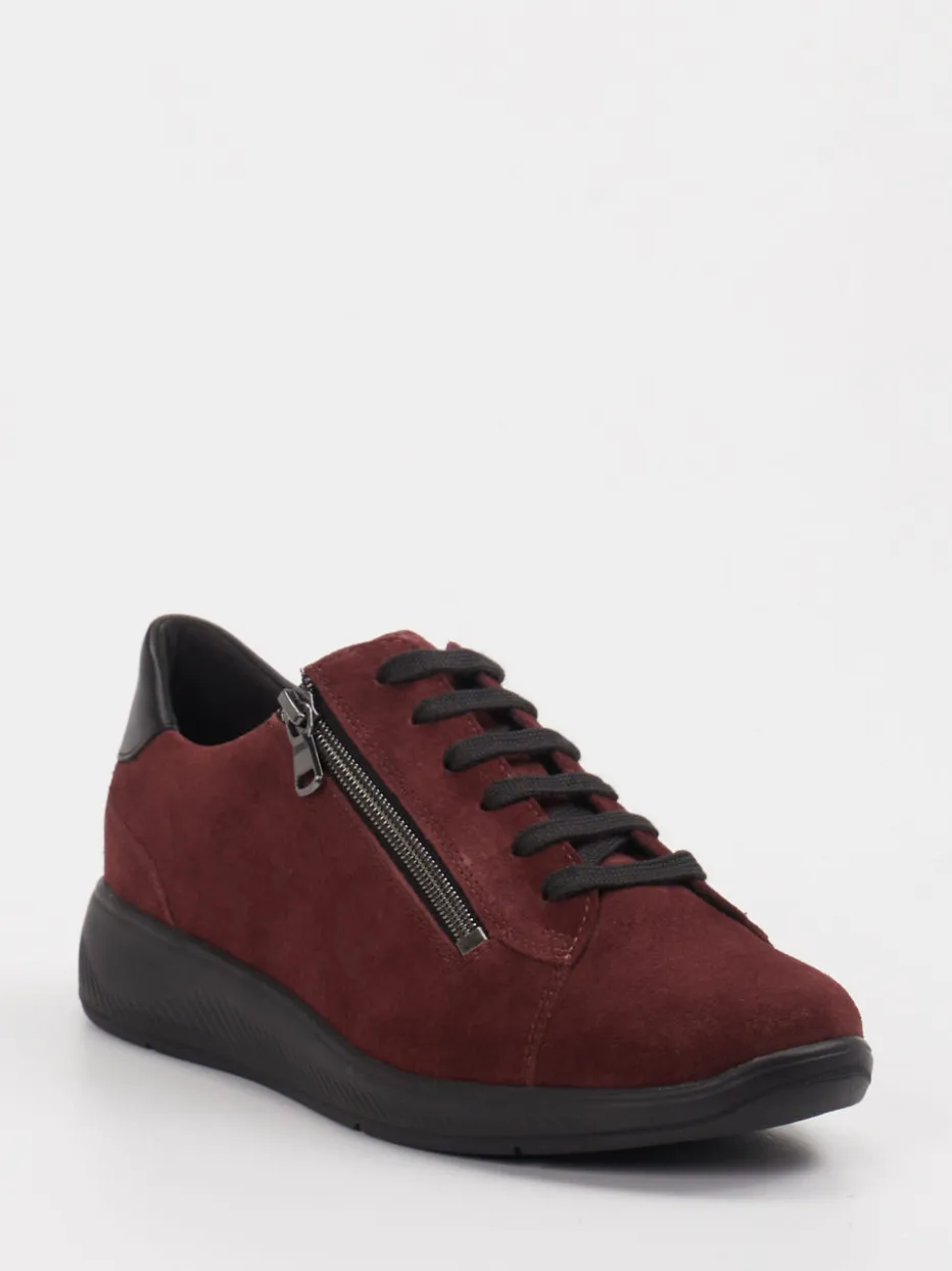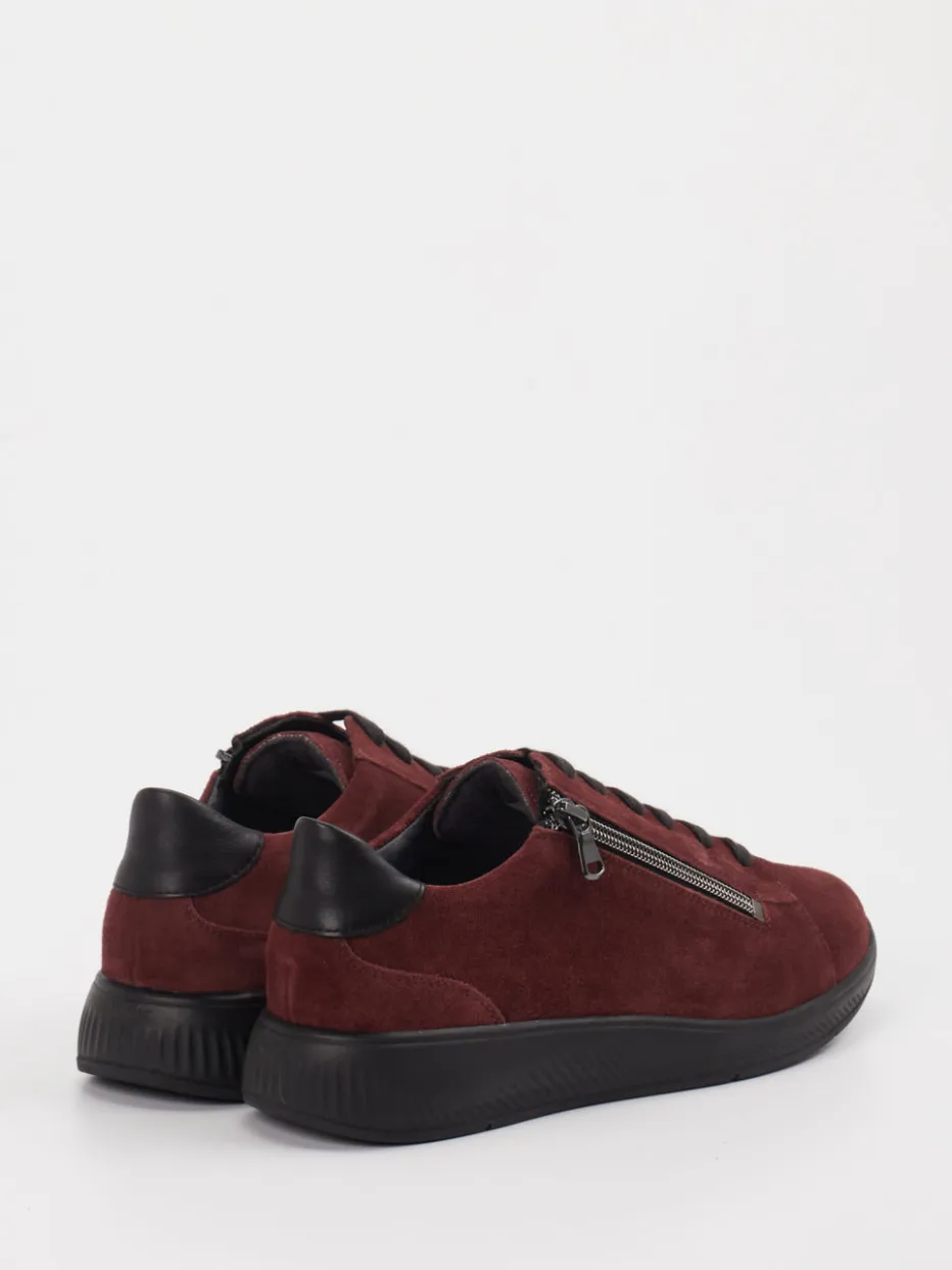 Der Damen-Sneaker von Solidus vereint Komfort und minimalistisches Design. Für entspannte Stadtspaziergänge und den Alltag bietet dieser Sneaker aus bordeauxrotem Veloursleder einen gelungenen Mix aus Stil und Funktion. Die glatte, matte Oberfläche wirkt modern, während Schnürung und seitlicher Reißverschluss für müheloses An- und Ausziehen sorgen. Eine profilierte Komfortsohle aus Gummi und der gepolsterte Fersenbereich sorgen für angenehmen Halt auch bei längeren Wegen. Der klassische, abgerundete Schnitt harmoniert mit monochromen Herbstlooks und casual Outfits. Solidus steht hier für hochwertige Verarbeitung und spürbaren Tragekomfort – ganz ohne Kompromisse im Design.