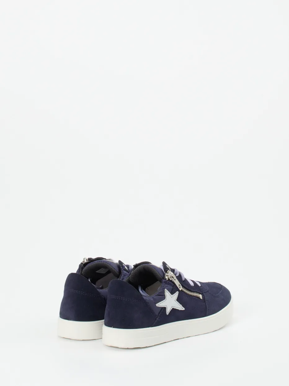 Trendstark durch Alltag und Freizeit.Superfit präsentiert diesen Sneaker für Kinder im geschmackvoll sportiven Design. Für spontane City-Trips oder die Schule: Das weiche Veloursleder in Dunkelblau ist samtig angeschliffen und bildet zusammen mit silberblauer Schnürung und Innenreißverschluss ein stimmiges Gesamtbild. Auffällig: die seitliche Stern-Applikation in Metallic-Optik – trendig und stilvoll. Die klassische, flache Silhouette trifft auf eine weiße PU-Sohle mit rutschfestem Profil. Der Look orientiert sich am Casual-Chic mit Streetwear-Einflüssen und passt ideal zu Jeans oder Shorts. Komfort und Stil in einem – kindgerecht und markenbewusst umgesetzt.