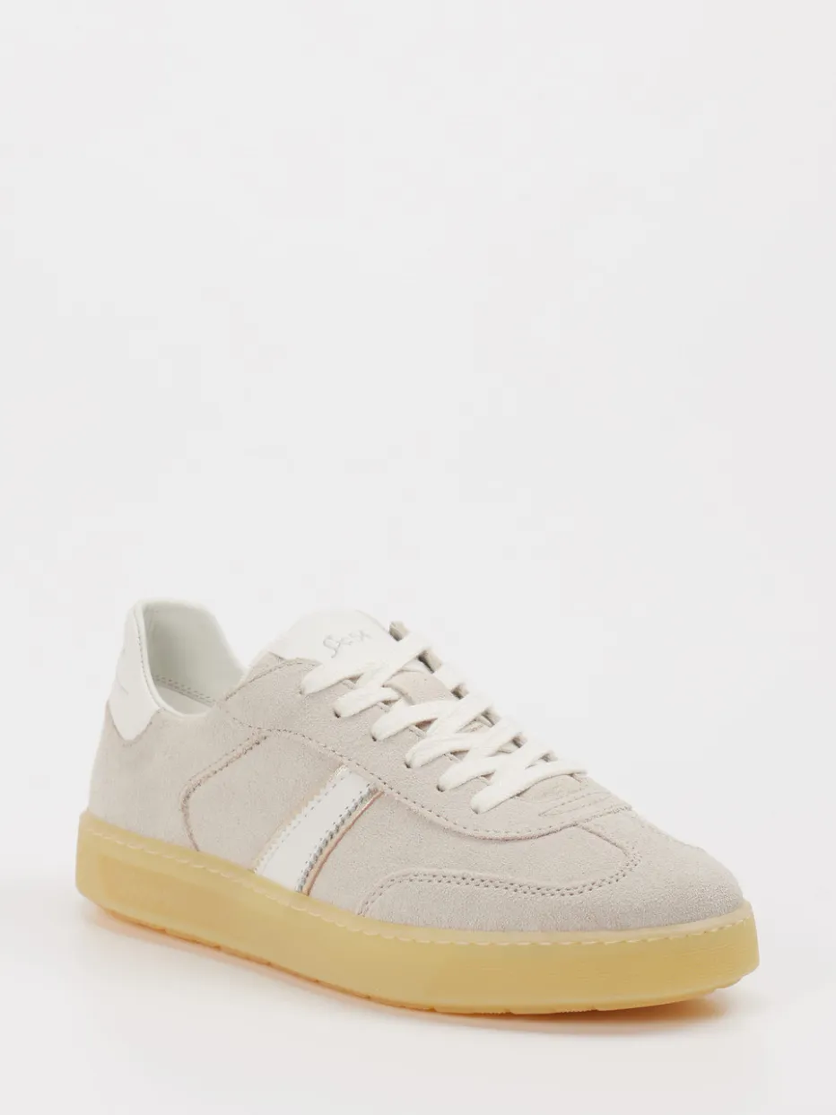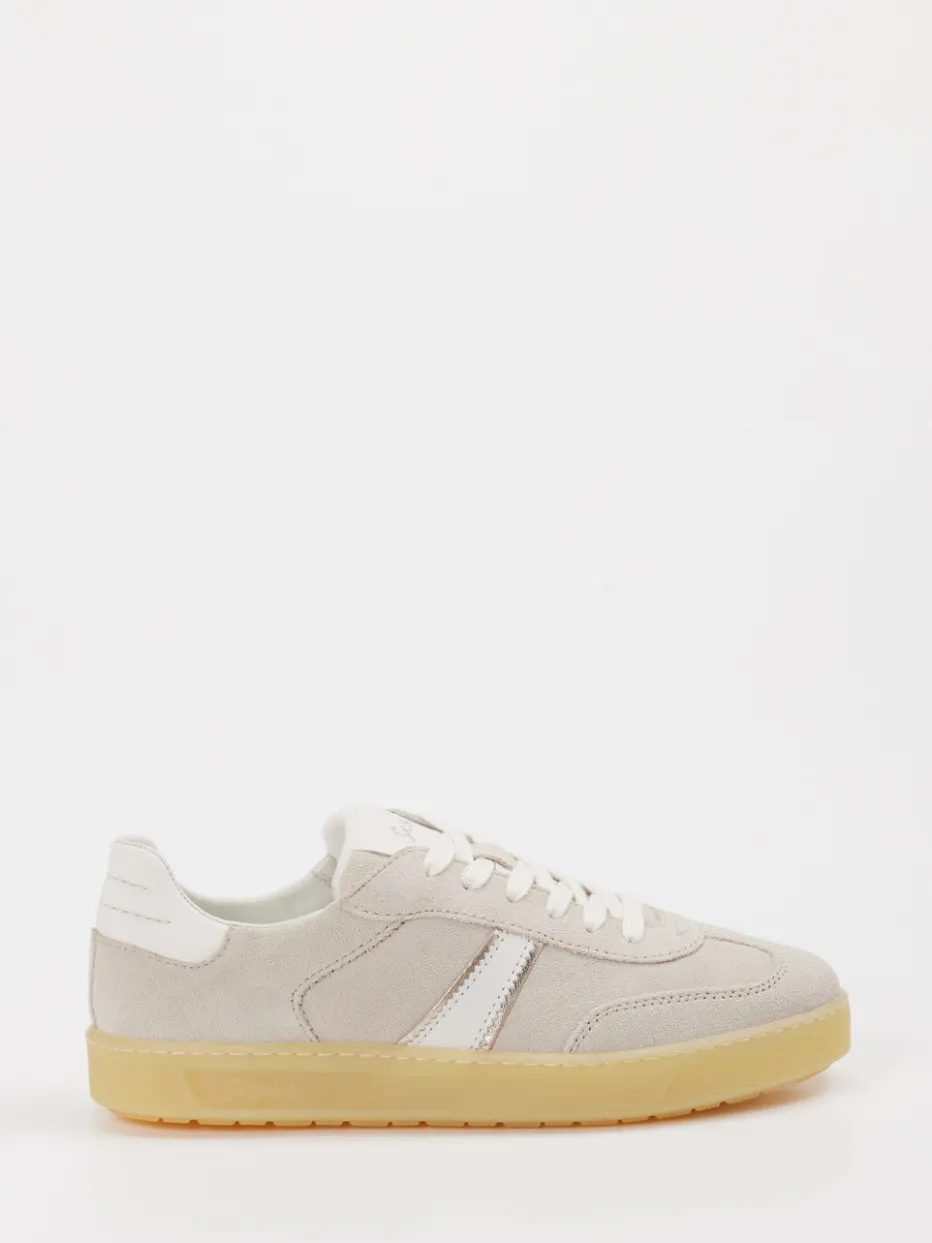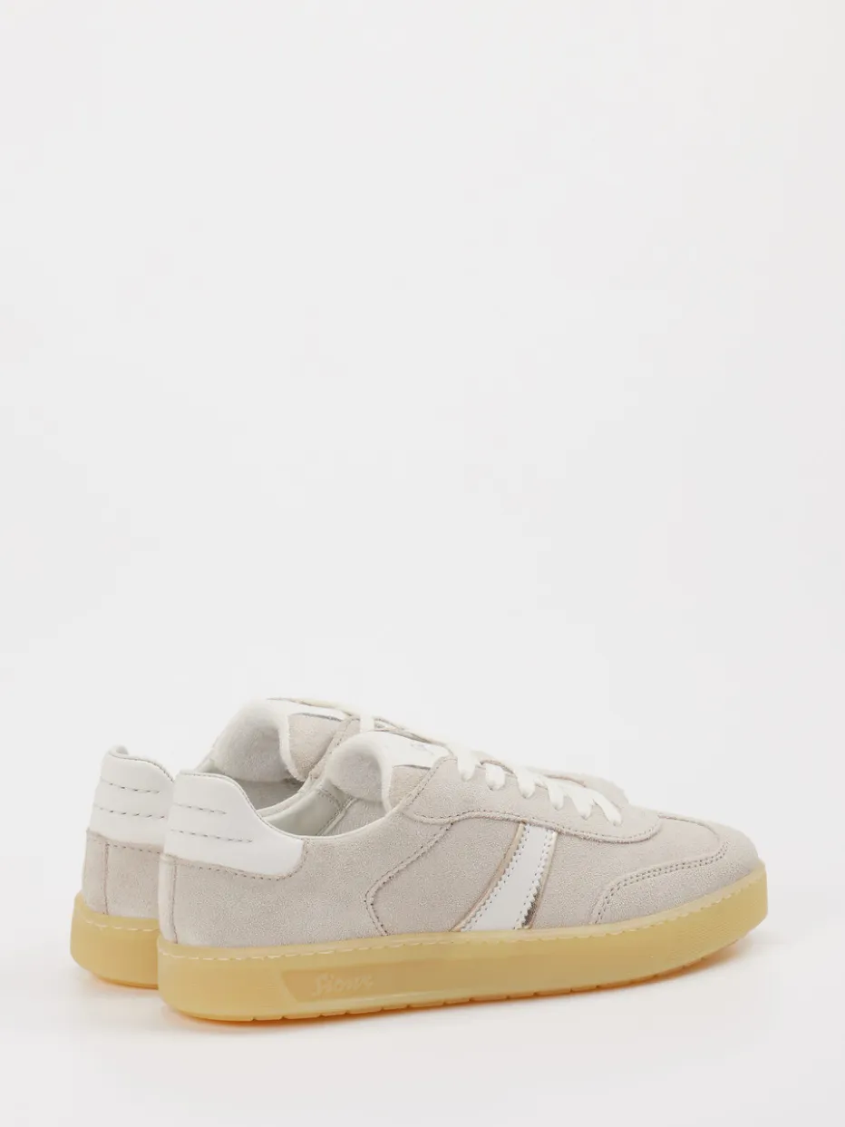 Moderner Alltagsbegleiter mit Retro-Charme. Sioux präsentiert einen Low-Top-Sneaker für entspannte Freizeitmomente. Das Modell aus beigegrauem Veloursleder überzeugt mit matter Oberfläche und klassisch flacher Silhouette. Akzente setzen weiße Kontraststreifen und eine honigfarbene Gummisohle, die den Retro-Look unterstreichen. Ein gepolsterter Fersenbereich sowie ein textilgefüttertes Innenleben erhöhen den Tragekomfort. Der Schnürverschluss sorgt für verlässlichen Halt. Ideal für Casual-Outfits mit Chinohose und T-Shirt – perfekt für den „Quiet Luxury“-Trend. Sioux verbindet bewährte Bequemschuh-Kompetenz mit stilsicherer Zurückhaltung.