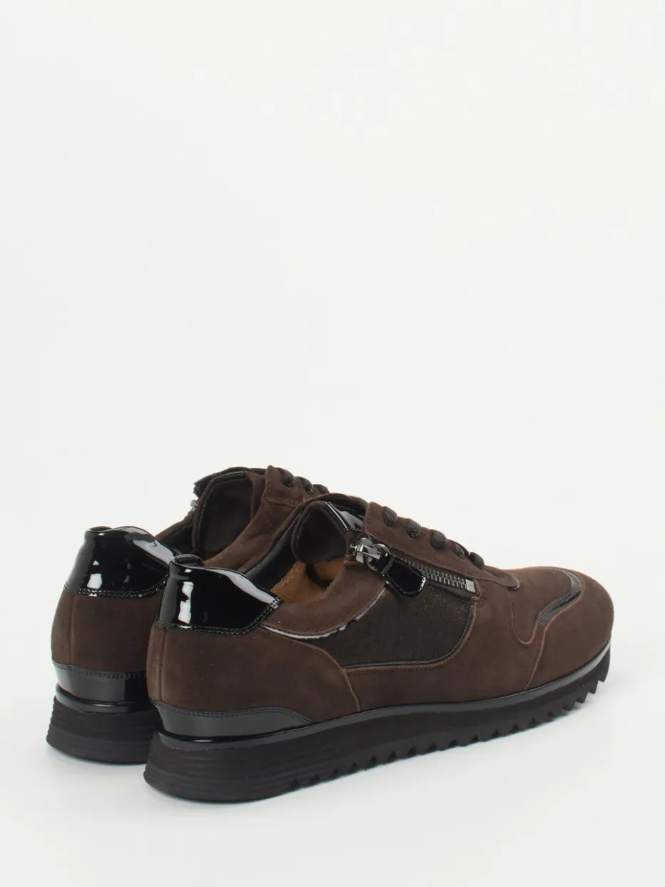 Stilvoll unterwegs im Alltag.Hassia präsentiert einen sportiv-eleganten Low-Top-Sneaker für Damen. Für Situationen, in denen Komfort und ein gepflegter Look gefragt sind, bietet dieser Sneaker die ideale Lösung. Gefertigt aus kaffeebraunem Veloursleder, zum Teil samtig angeschliffen, kombiniert mit schimmerndem Textil und glänzenden Lackdetails, zeigt sich das Design zugleich klassisch und detailverliebt. Der praktische seitliche Reißverschluss erleichtert den Einstieg, während die griffige Gummisohle Bodenhaftung verleiht. Eine Zuglasche und metallische Highlights unterstreichen den trendbewussten Anspruch, passende Stylingpartner sind etwa ein schwarzer Trenchcoat oder eine dunkelbraune Handtasche. Maximaler Komfort trifft bei diesem Modell auf dezente Retro-Anklänge – mit typischer Hassia-Leichtigkeit.