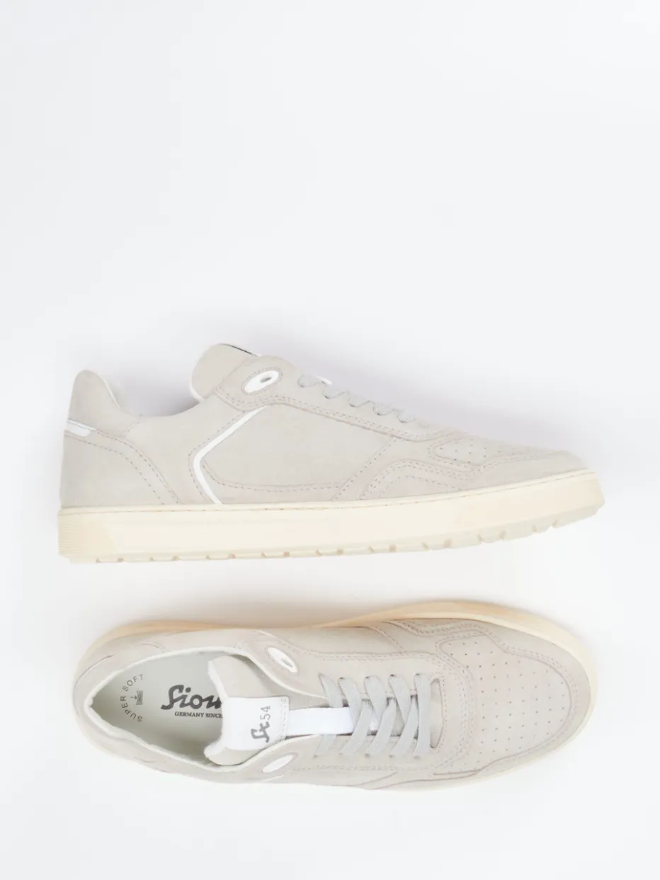 Minimalistische Raffinesse für jeden Tag.Der Herren-Sneaker von Sioux vereint cleanes Design mit alltagstauglichem Komfort. Ideal für den Weg ins Café oder den entspannten Büro-Freitag: Das hellbeige Veloursleder mit samtiger Oberfläche trifft auf eine klare, flache Silhouette und weiße Akzentstreifen. Die perforierte Zehenpartie sowie gepolsterte Einsätze sorgen für angenehmes Tragegefühl, ergänzt durch das weiche Frotteefutter und ein herausnehmbares Supersoft-Fußbett. Die cremefarbene Gummisohle wirkt rutschhemmend und flexibel. Der Look harmoniert mit Chinos oder Jogpants gleichermaßen und spiegelt moderne Zurückhaltung im Trend „Quiet Luxury“. Stilvolle Leichtigkeit mit Komfortanspruch – typisch Sioux.