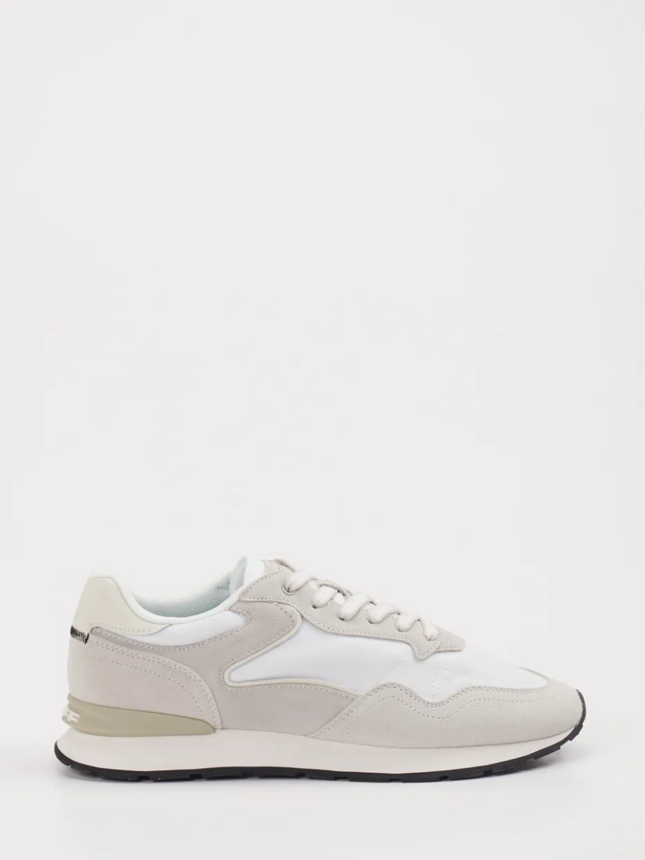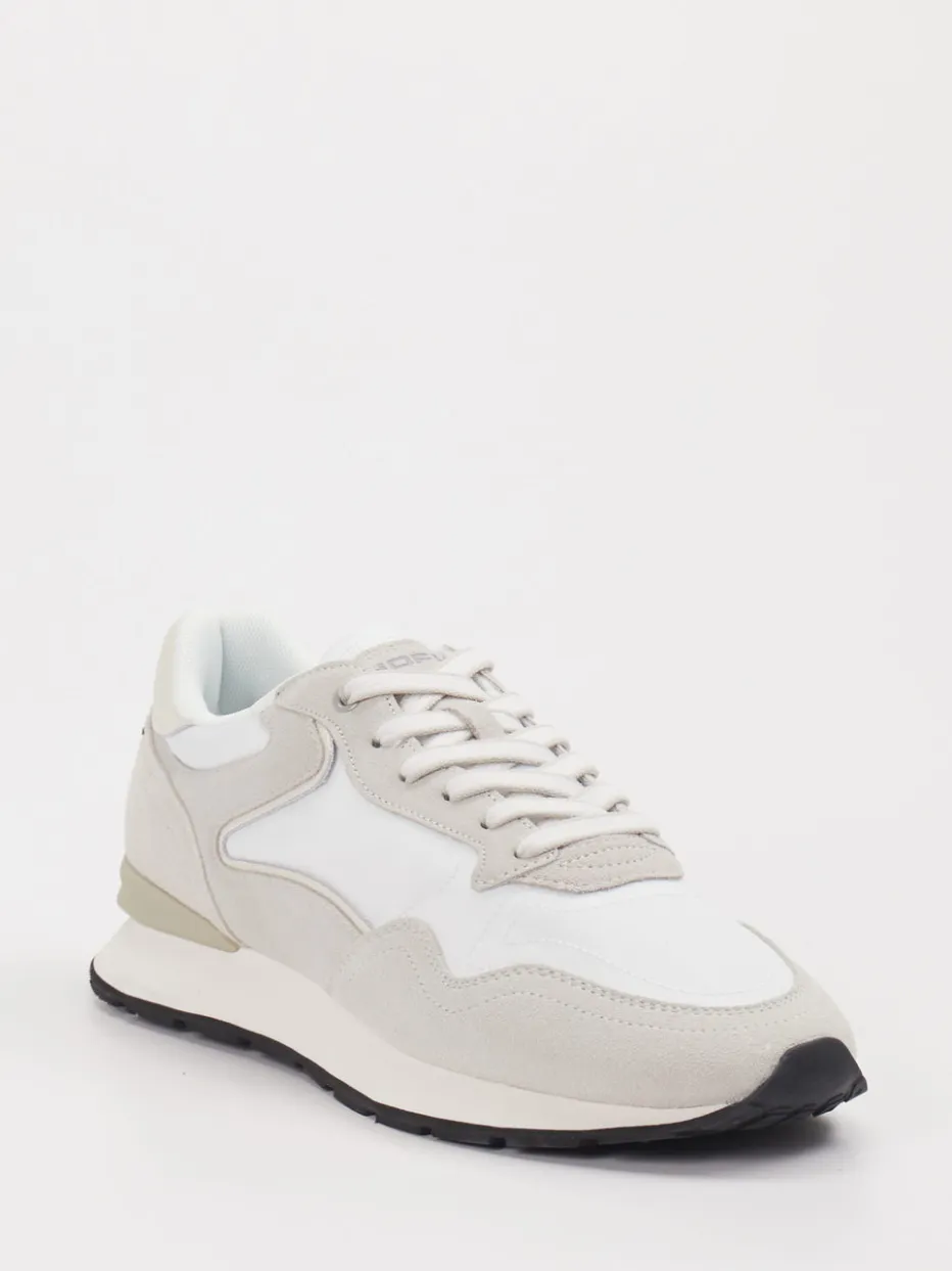 Dieser Retro-Sneaker von THE HOFF BRAND vereint weiches Veloursleder mit textilen Einsätzen in Offwhite und Hellgrau – ideal für stilbewusste Alltagslooks mit dezentem Statement.