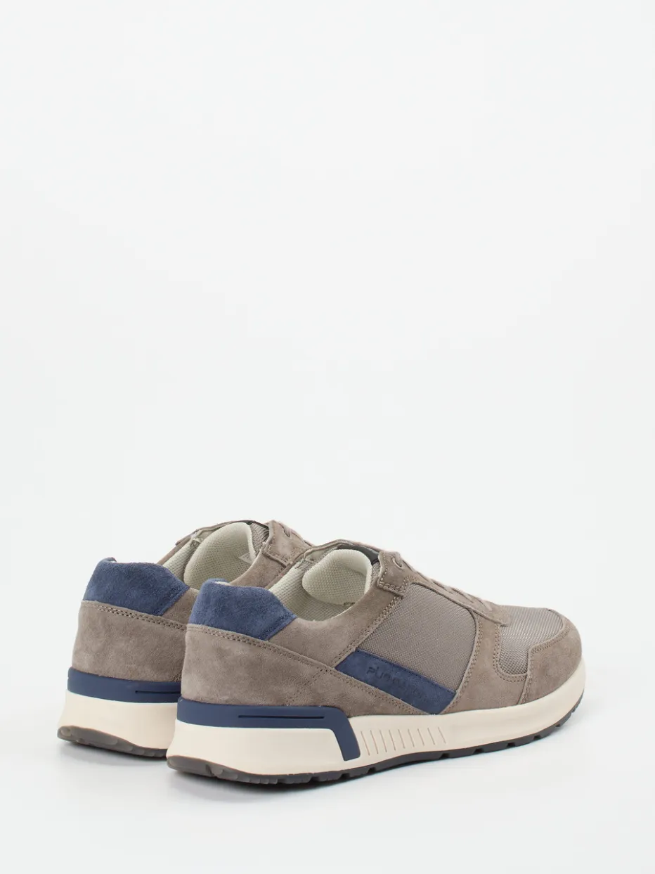 Vielseitiger Komfort für urbane Tage.Die Marke Pius Gabor präsentiert einen sportlich-eleganten Herren-Sneaker für Alltag und Freizeit. Die Kombination aus taupegrauem Veloursleder und strukturiertem Mesh verleiht dem Schuh eine moderne Optik mit dezenter Retro-Note. Dunkelblaue Overlays setzen ausdrucksstarke Kontraste. Die klassische Schnürung und das gepolsterte Fersenpolster sorgen für bequemen Halt. Eine stoßdämpfende Gummisohle sowie die Kork-Zwischensohle unterstützen den Gehverlauf – ideal für lange Tage. Durch das wechselbare Fußbett ist der Sneaker auch für Einlagen geeignet. In Kombination mit Chinos oder Jeans wirkt der Look stilsicher und lässig zugleich. Pius Gabor steht für hochwertige Verarbeitung mit sportiv-minimalistischem Anspruch.