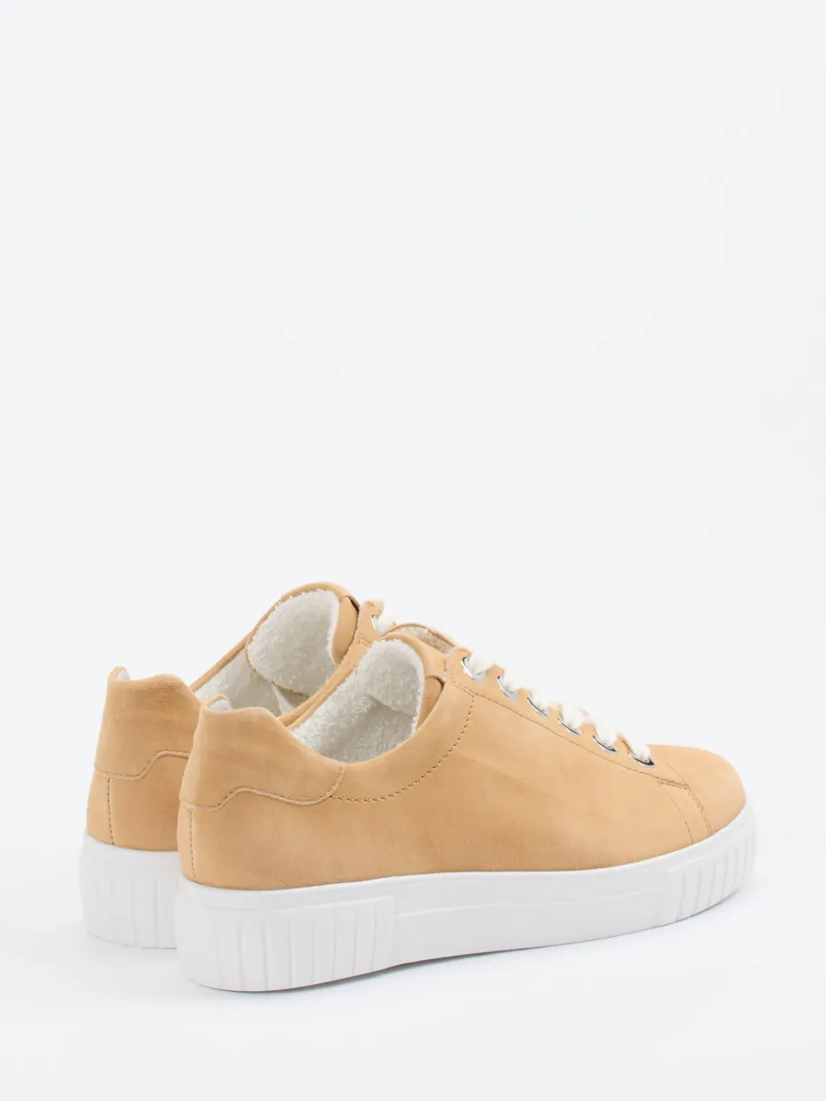Schlicht und komfortabel für den Sommer.Semler zeigt bei diesem Damen-Sneaker in der Form Pippa, wie sich Komfort und dezente Ästhetik vereinen lassen. Für entspannte Tage in der Stadt oder auf Reisen ist dieser flache Sneaker dank Weite H und leichtem Gewicht ein verlässlicher Begleiter. Das beige Veloursleder wirkt samtig-matt und strahlt in Kombination mit der weißen Gummisohle eine zurückhaltende Frische aus. Ton-in-Ton-Nähte, Metallösen und Schnürung betonen den minimalistischen Stil, während das gut gepolsterte, herausnehmbare Fußbett Komfort und Orthopädieanspruch verbindet. Ein Favorit für casual-orientierte Looks und neutral abgestimmte Farbkonzepte. Semler steht für gehobenen Laufkomfort und dezente Eleganz im Alltag.