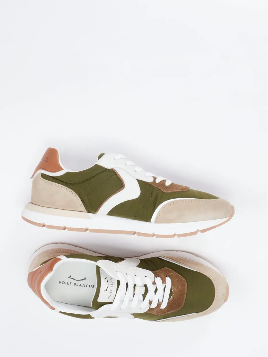 Retro-inspirierter Sneaker von Voile Blanche mit markantem Materialmix aus Veloursleder, Nylon und Glattleder. Ideal für Streetstyle-Looks mit sportlicher Note.
