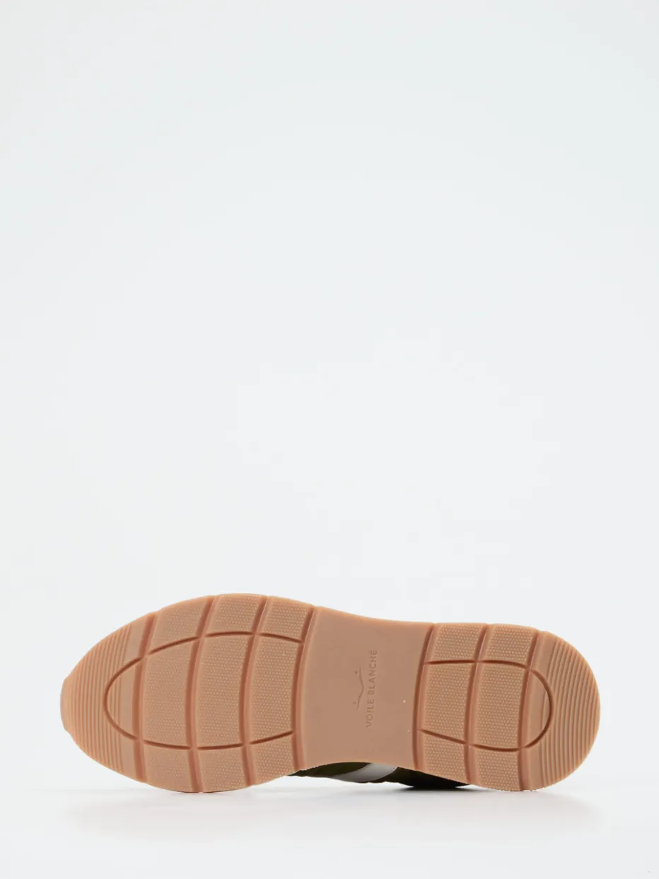 Urbaner Alltag trifft Vintage-Flair.Voile Blanche präsentiert einen Sneaker für Herren im Stil klassischer Retro-Runner. Ob bei einem Spaziergang durch die Stadt oder im aktiven Freizeitalltag – dieser Sneaker vereint Komfort mit Design-Kompetenz. Das smarte Obermaterial aus Veloursleder, kombiniert mit glattem Leder und gestepptem Nylon, verleiht dem Modell eine spannende Textur. Die dominante olivgrüne Farbgebung wird ergänzt durch cognac- und beigefarbene Overlays sowie weiße Kontraste. Die flache Silhouette, profilierte Gummisohle und gepolsterte Ferse sorgen für angenehmes Tragegefühl. Streetwear-Einflüsse im Stil der 90er machen diesen Sneaker zu einem Must-have für alle, die lässige Looks schätzen. Mit funktionalem Design und echtem Retro-Charakter verkörpert er sportive Leichtigkeit à la Voile Blanche.