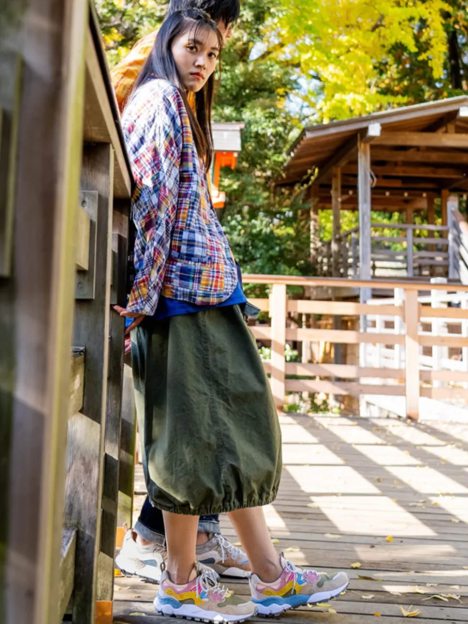Performance trifft Color-Blocking.Flower Mountain präsentiert mit diesem Sneaker ein modisches Statement mit Funktion. Die voluminöse Silhouette mit betonter Profilsohle bietet auch beim Outdoor-Einsatz sicheren Halt. Das Obermaterial kombiniert robustes Velours- und Textilgewebe mit samtig angeschliffener Oberfläche, ergänzt durch reflektierende Details und Zierperforationen. Verschiedene Apricot-, Rosé- und Khakitöne erzeugen einen lebendigen Patchwork-Look. Zugschlaufen an Ferse und Zunge sowie eine Schnürung in Silbergrau runden das zeitgemäße Design ab. Der Sneaker interpretiert Retro-Running neu – spielerisch, farbig, unabhängig. Ein stylisch-funktionaler Eyecatcher für urbane Beweglichkeit mit Charakter.