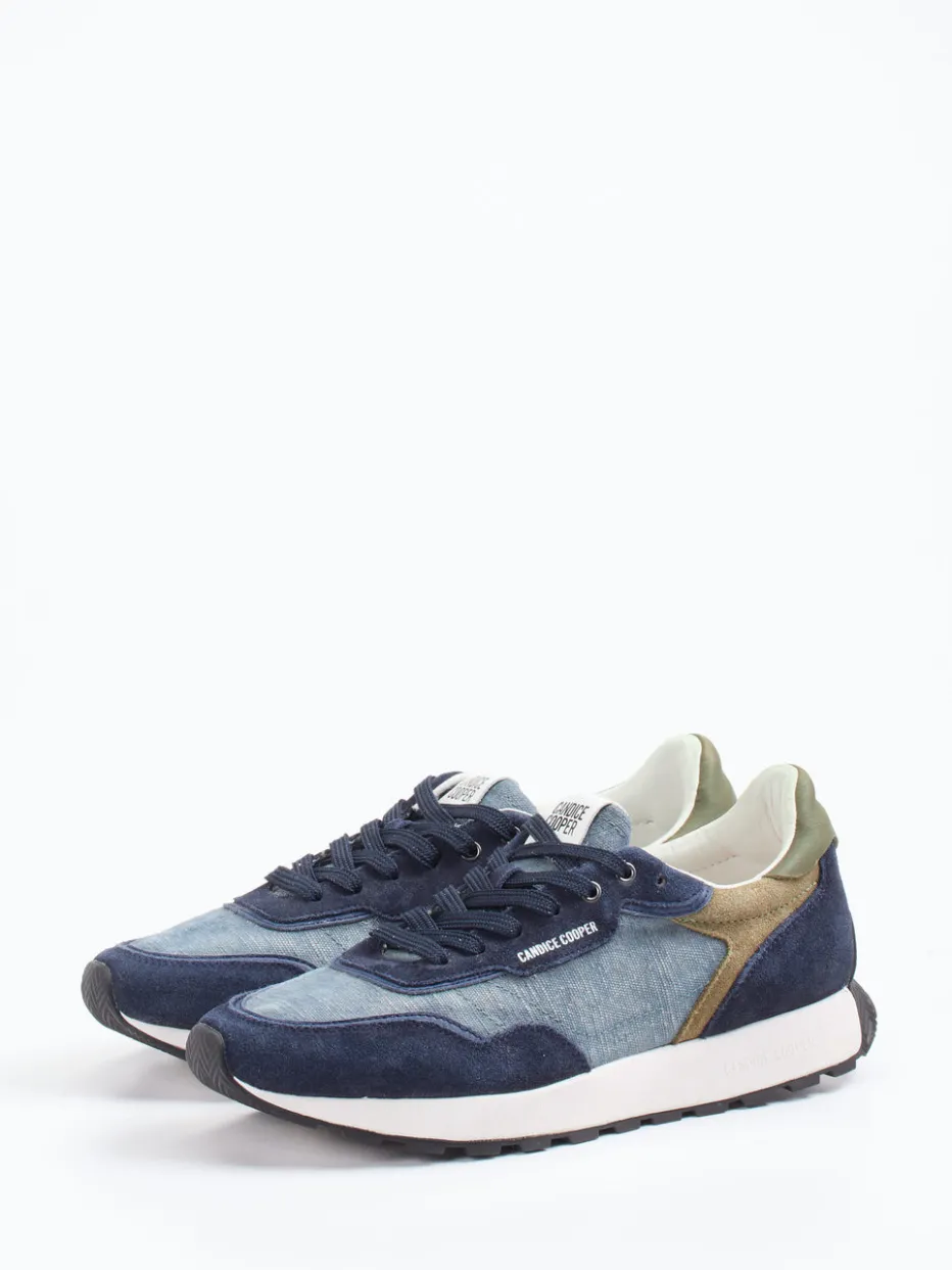 Retro trifft urbanen Denim-Look.Candice Cooper bringt mit diesem Herren-Sneaker stilvolle Streetwear in den Alltag. Ideal für urbane Freizeitmomente vereint der Schuh hochwertigen Materialmix aus samtigem Veloursleder und robustem Denim-Textil. Die Farbpalette aus Dunkelblau, Khaki und Oliv unterstreicht den Vintage-Charakter, während kontrastierende Applikationen eine moderne Linie setzen. Gepolsterte Partien und ein austauschbares Fußbett sorgen für Tragekomfort. Logo-Details, hochgezogene Gummisohle im Autofahrer-Stil und das griffige Grätenprofil runden das Design ab. Inspiriert von Retro-Running-Trends, lässt sich der Sneaker ideal zu Denimjacke oder Canvas-Rucksack kombinieren. Markentypisch vereint Candice Cooper Qualität, Komfort und Designkompetenz.