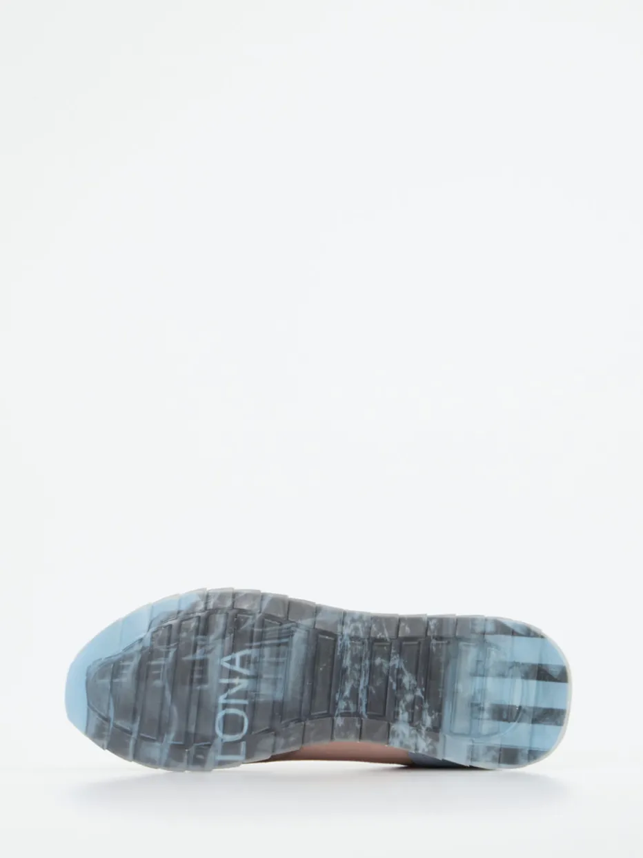 Pastell trifft Retro-Leichtigkeit.THE HOFF BRAND interpretiert den klassischen Retro Runner neu: als pastellfarbenen Sneaker mit femininer Note. Ideal für entspannte City-Walks oder Urlaubstage bei mildem Wetter bringt dieses Modell ein spannendes Materialspiel aus samtigem Veloursleder und luftdurchlässigem Meshtextil mit. Cremebeige, Rosé und Hellblau ergeben einen sanften Farbklang auf der flachen Silhouette mit mehrfarbiger Laufsohle. Die Schnürung sorgt für flexible Passform, die gepolsterte Ferse für zusätzlichen Komfort. Urbane Einflüsse aus Streetwear und Y2K prägen den Look. Kombiniert zu Jeans, Culottes oder Soft Tailoring. Softes Fußbett und visuelle Detailfreude – THE HOFF BRAND setzt modische Akzente mit hohem Komfort.