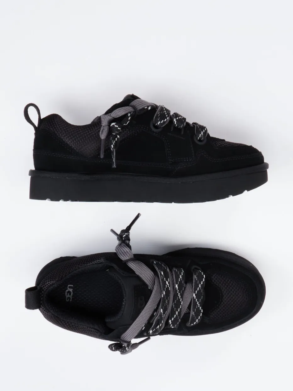 Robust und trendbewusst.UGG präsentiert einen Sneaker für Damen im Low-Top-Design. Für den aktiven Alltag zwischen City und Natur: Der schwarze Sneaker kombiniert Veloursleder mit Mesh-Texturen, was für eine robuste, leicht strukturierte Optik sorgt. Die reflektierenden Schnürsenkel und das dezente Branding fügen sich harmonisch in das tonale Design ein. Eine voluminöse Gummisohle mit griffigem Profil unterstützt souveränes Auftreten auf unterschiedlichem Terrain. Zuglasche und gepolsterte Details unterstreichen den Outdoor-Einfluss, während die klassische Rundform im Chunky-Stil dem Gorpcore-Trend folgt. Vielseitig kombinierbar – ideal zu Funktionsjacken und urbanem Streetwear. UGG vereint Funktionalität mit sportlich-modischem Selbstverständnis.